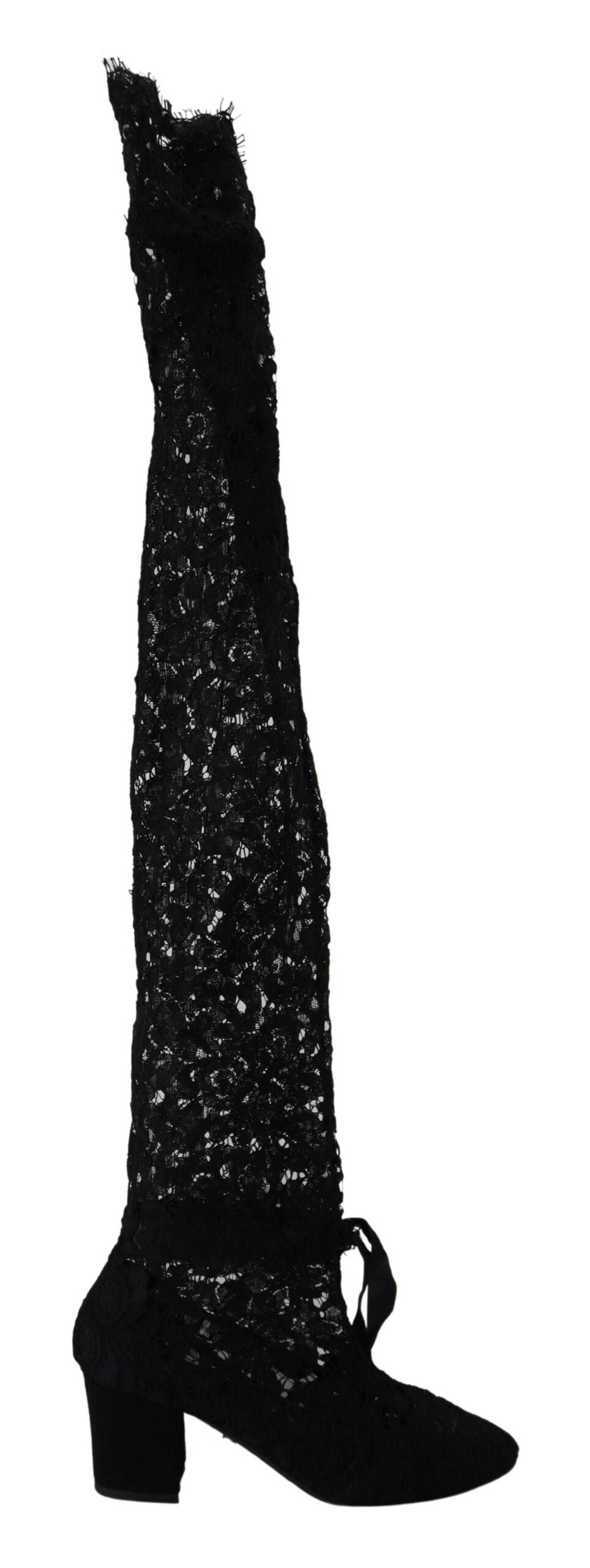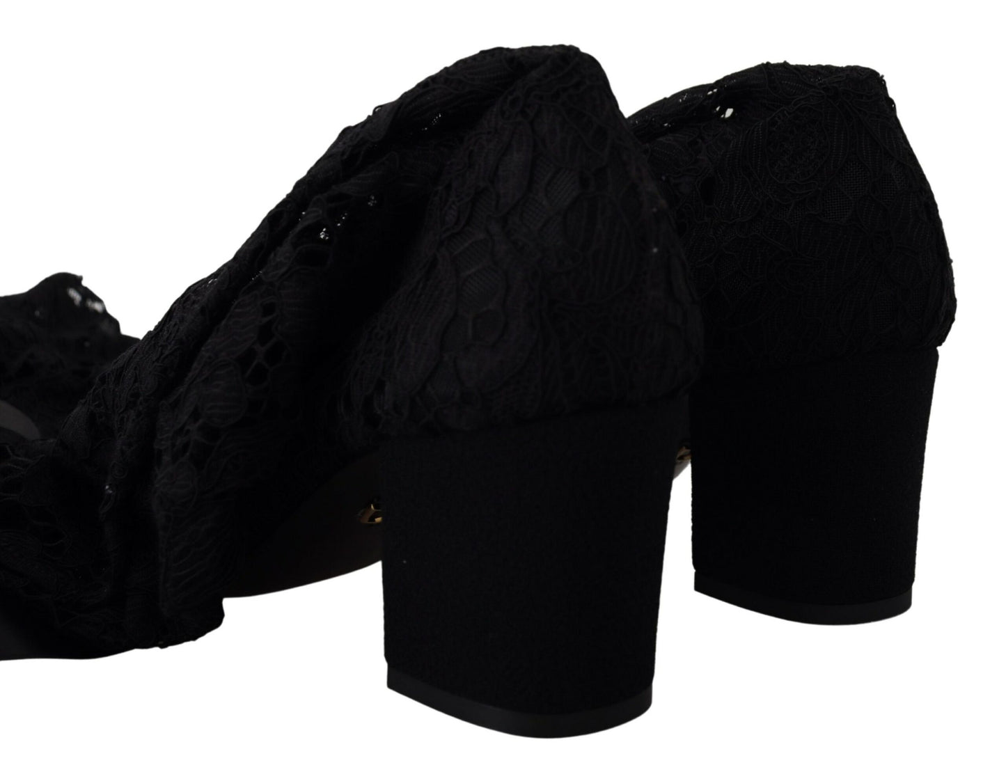Step into luxury with these exquisite black lace stretch sock pumps from Dolce & Gabbana. Featuring the brand’s iconic design, these boots merge comfort with unwavering style, making a statement with every stride. Crafted in Italy, they reflect exceptional quality and a dedication to fine craftsmanship. Perfect for elevating any ensemble with a touch of sophistication.