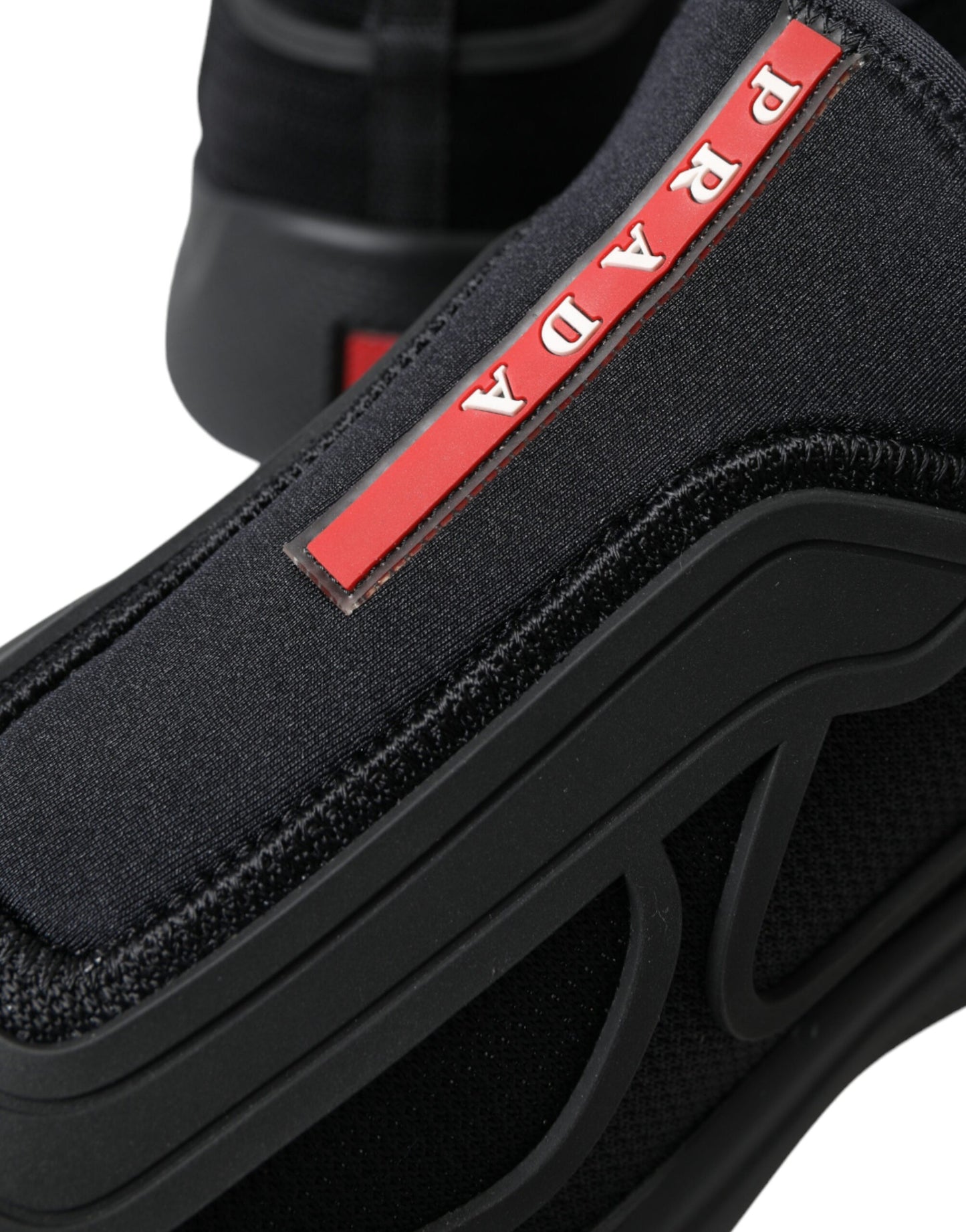 Gorgeous brand new with tags, 100% Authentic Prada technical bike-knit sneakers. Featuring a logo to the outside, a branded insole, an almond toe, a slip-on style, a black rubber sole and a technical bike knit.