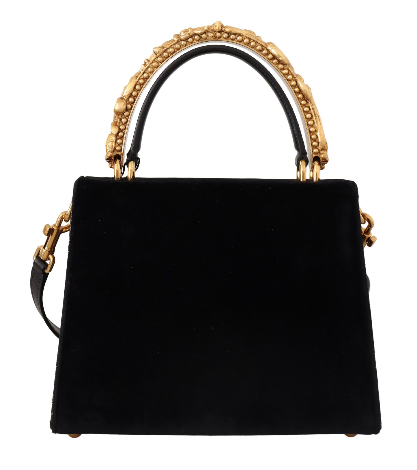Indulge in the epitome of Italian luxury with this exquisite Dolce & Gabbana hand shoulder bag. With its opulent black brocade and gold baroque details, it’s a show-stopping addition to any ensemble. The practical yet elegant design boasts a secure push-lock flap closure and a meticulously organized interior with zipper pockets and two compartments. Crafted with expert precision, this bag is not just a carryall – it’s a statement of sophistication and high fashion craftsmanship.