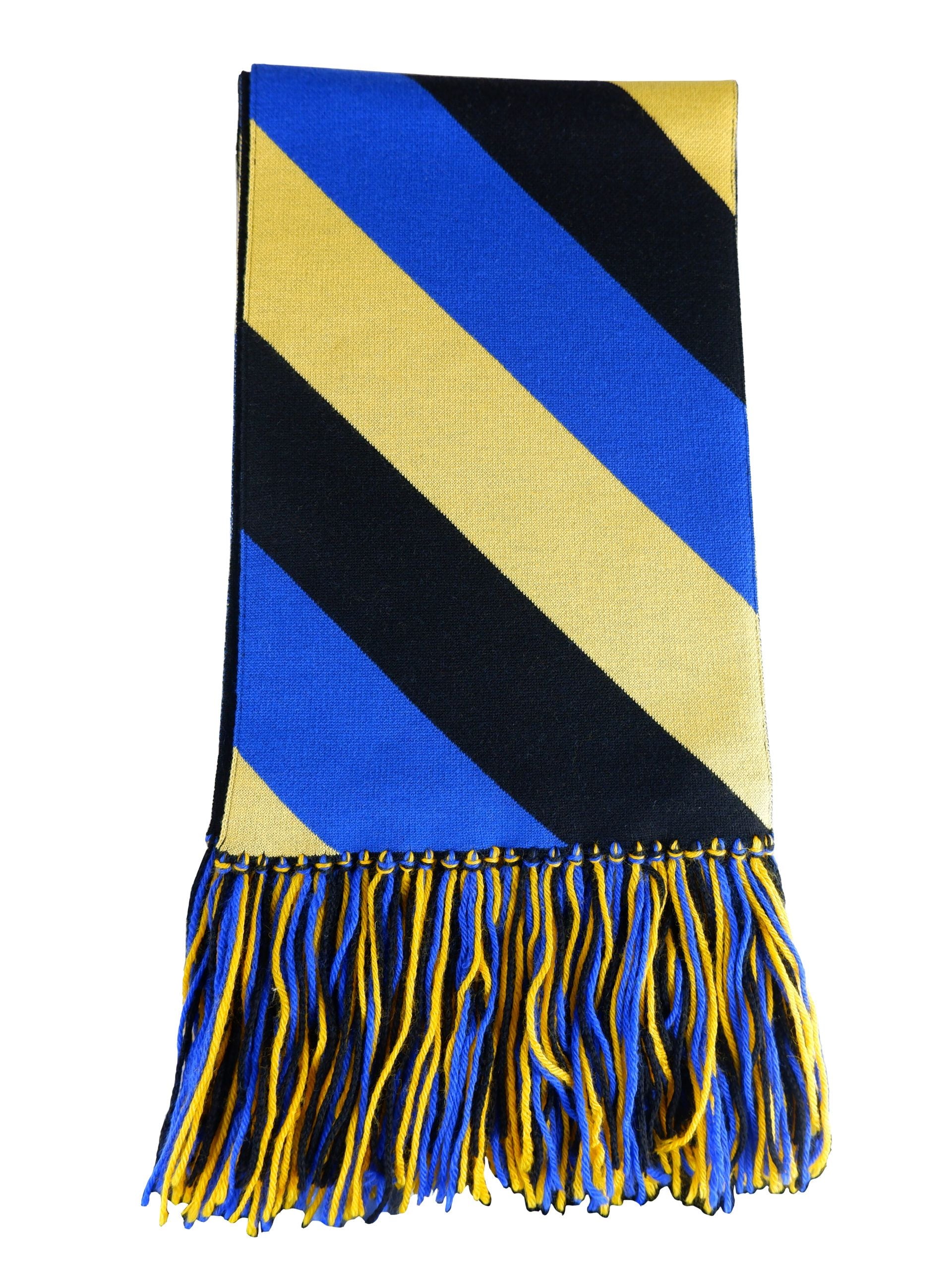 Elegant Virgin Wool Scarf in Black, Blue & Yellow