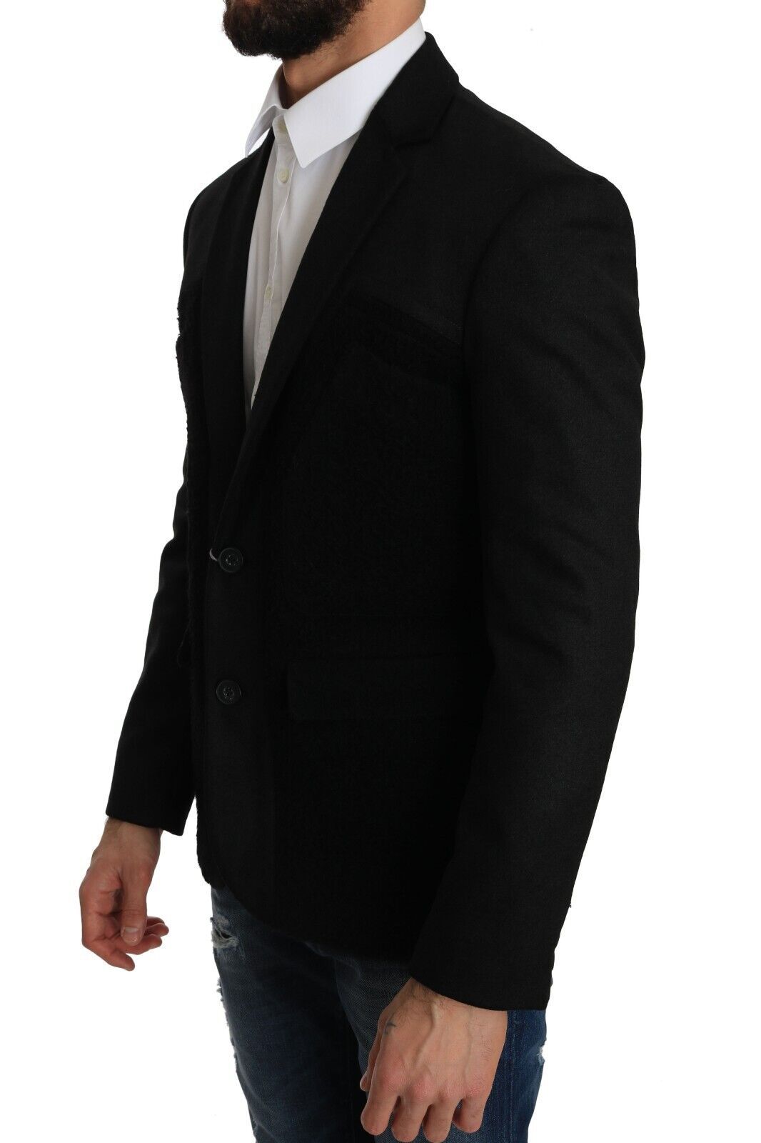 Exude sophistication with this immaculate Balmain men’s blazer. Tailored to perfection, this slim fit jacket features a polished single-breasted design with a two-button closure and a classic notch lapel. The exquisite blend of virgin wool, nylon, and cashmere promises premium comfort and durability. Rendered in a sharp black hue, this blazer is an epitome of luxe craftsmanship, carrying the distinct logo details as a mark of its esteemed lineage. Assembled with great care in Italy, it stands as a testament to unparalleled elegance and exclusive style.
