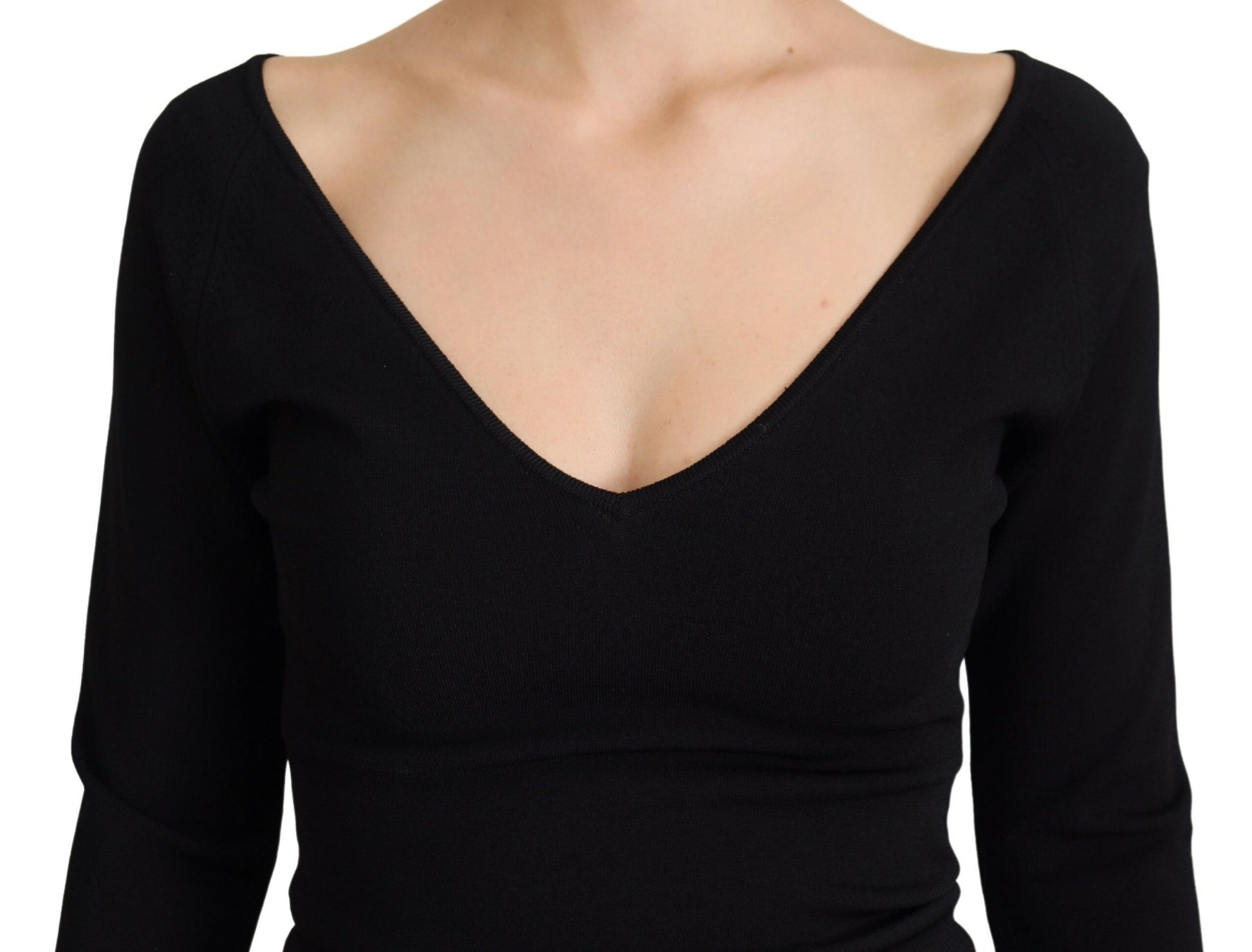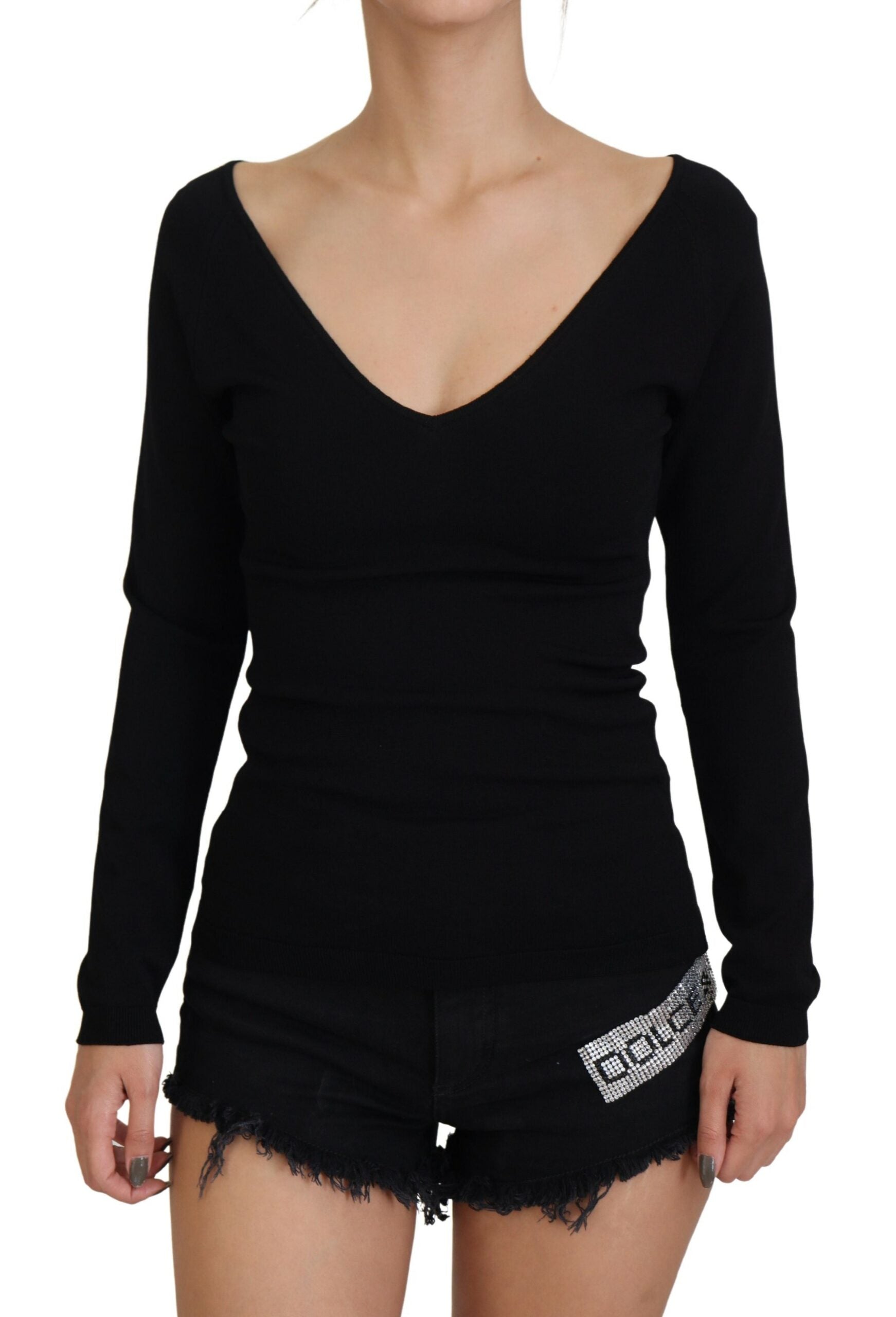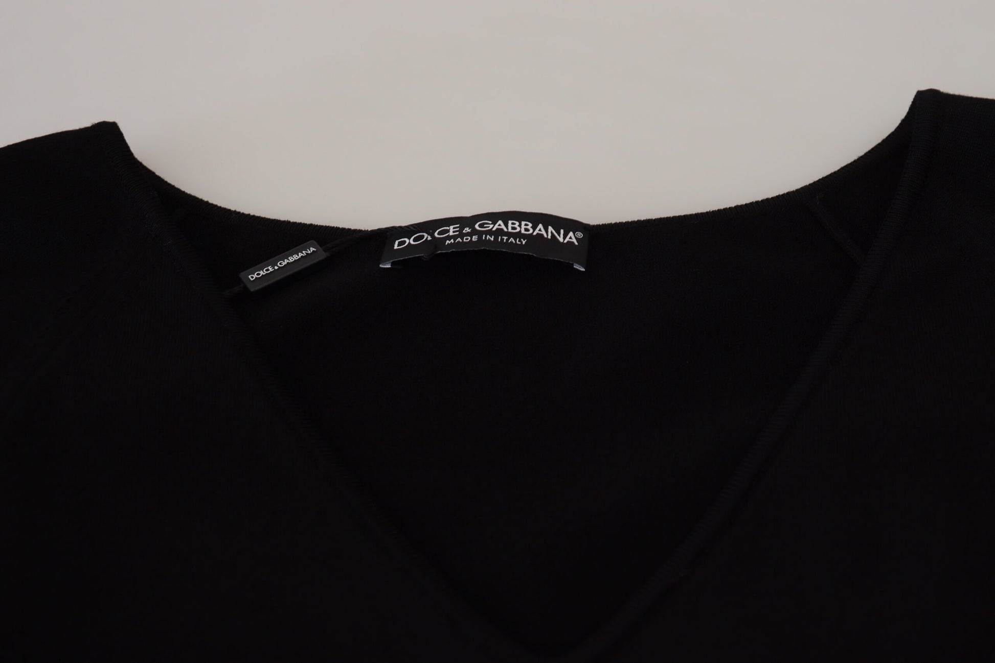 Indulge in the epitome of Italian elegance with this gorgeous black pullover sweater from Dolce & Gabbana. Featuring a chic deep v-neck design and crafted from a sumptuous viscose blend, this stunning sweater epitomizes luxury comfort. Its sleek black color and subtle logo detailing add a touch of sophistication to any outfit, making it a must-have for an upscale, contemporary wardrobe.