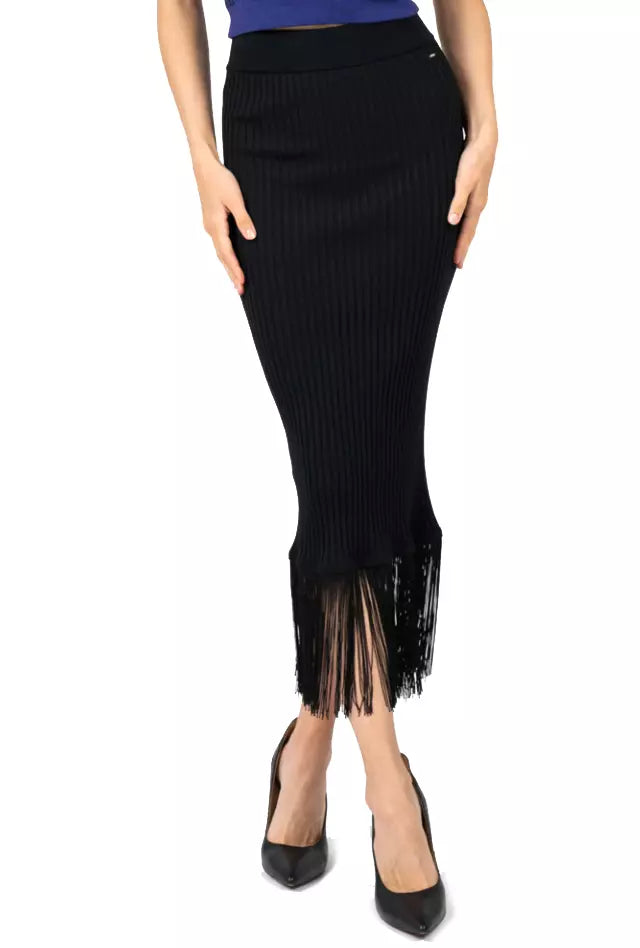 Chic Ribbed-Fringe Pencil Skirt in Black