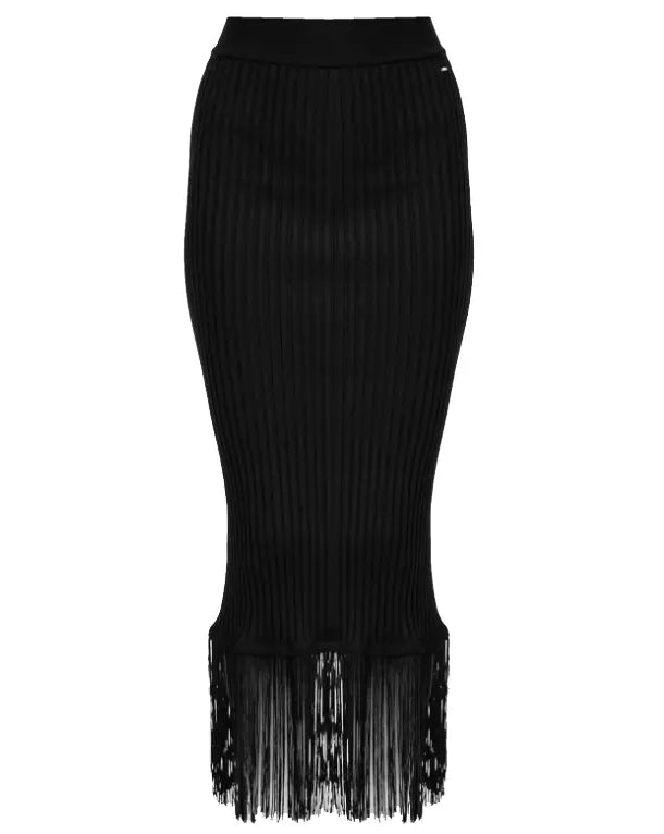 Step into sophistication with this elegant pencil skirt, perfect for creating a polished and stylish look. Made in Italy, this piece features a tasteful ribbed texture and playful fringed bottom, offering a unique take on classic silhouette.