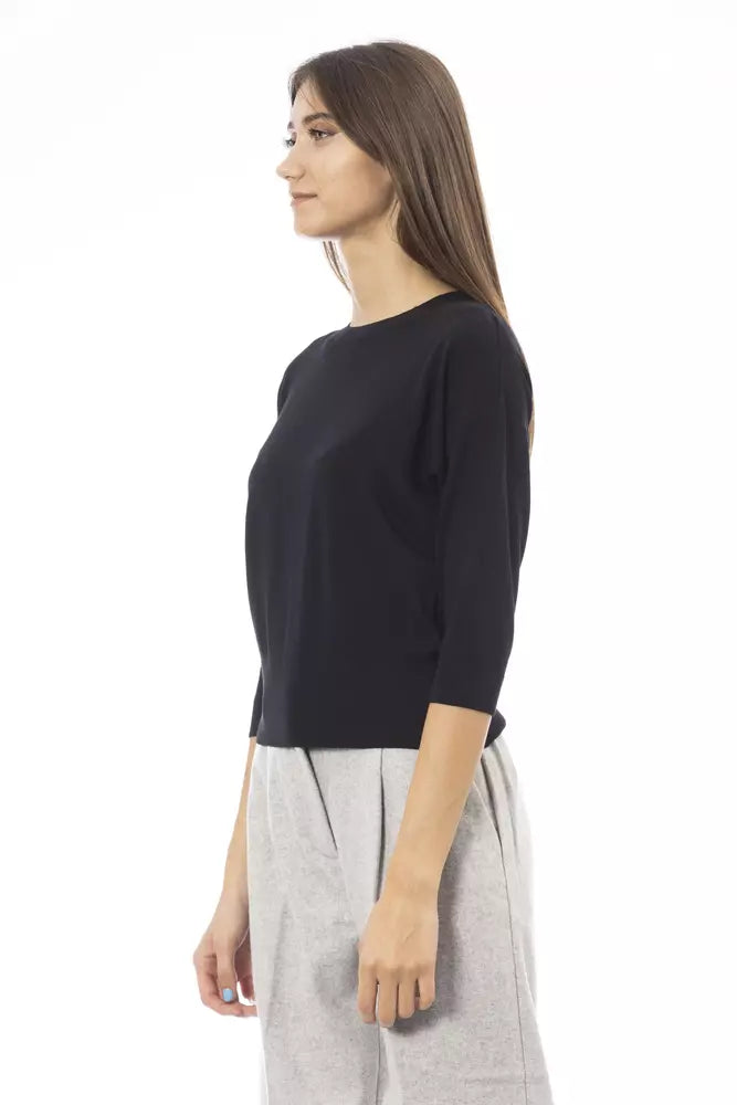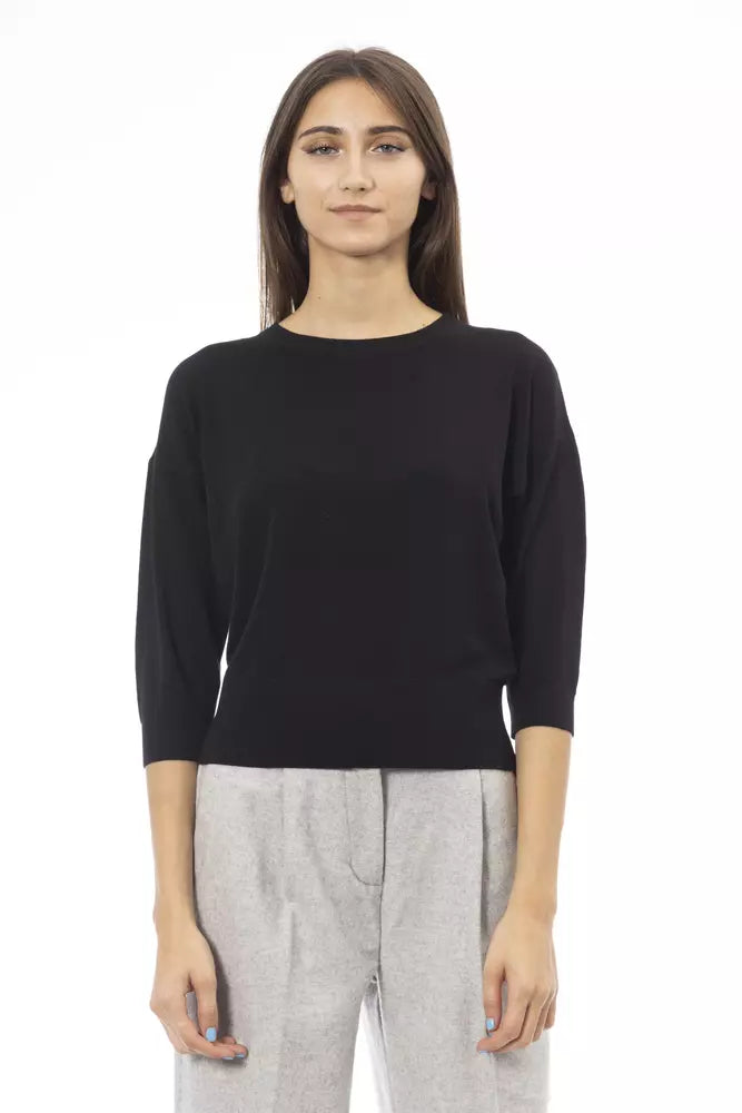 Elegant Black Crew Neck Sweater with Short Sleeves