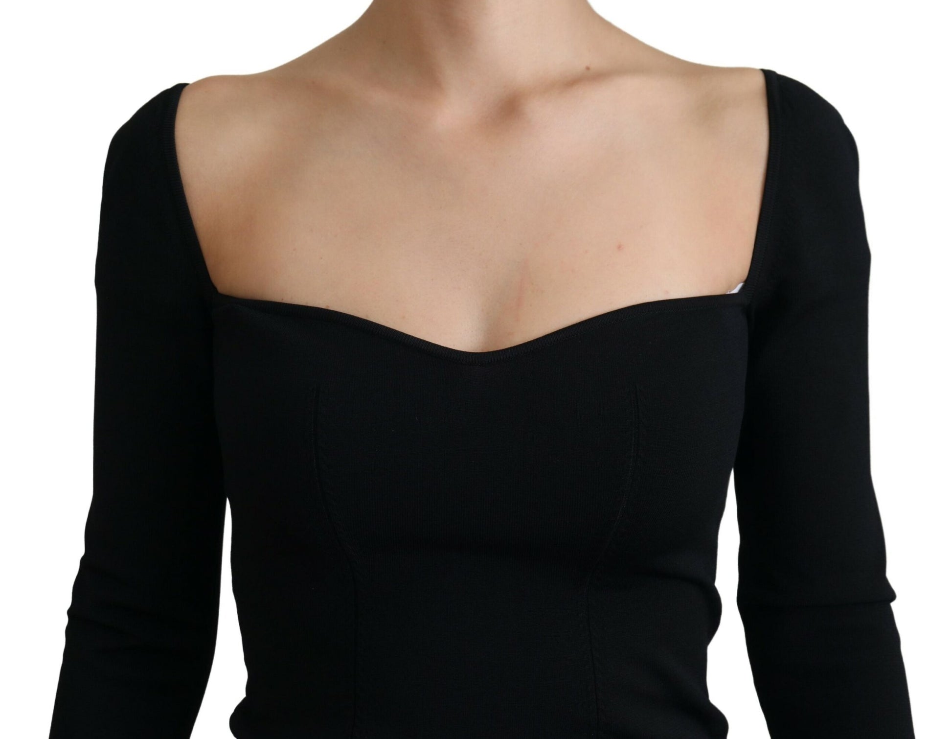Indulge in the epitome of Italian sophistication with this Dolce & Gabbana pullover sweater, featuring a flattering sweetheart neck that exudes elegance and femininity. Crafted from a sumptuous blend of viscose and polyester, this cozy yet luxurious sweater is perfect for those looking to add a touch of high-fashion flair to their wardrobe. With its versatile black color and subtle logo details, it’s an excellent choice for both daytime poise and evening panache.