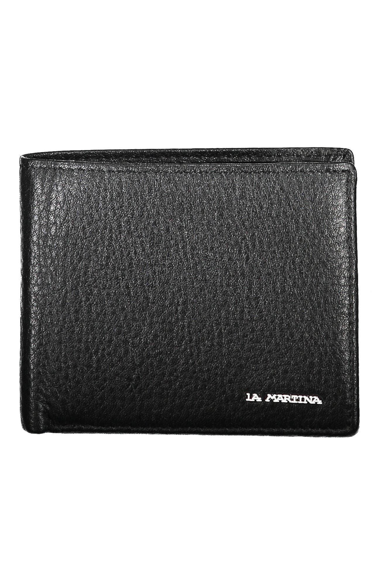 Discover the epitome of sophistication with La Martina’s sleek black leather wallet, designed to cater to the modern gentleman’s needs. Featuring two well-organized compartments and double card spaces, this wallet embodies both practicality and elegance. The iconic logo subtly accentuates the design, making it not just a functional accessory, but a statement of style.