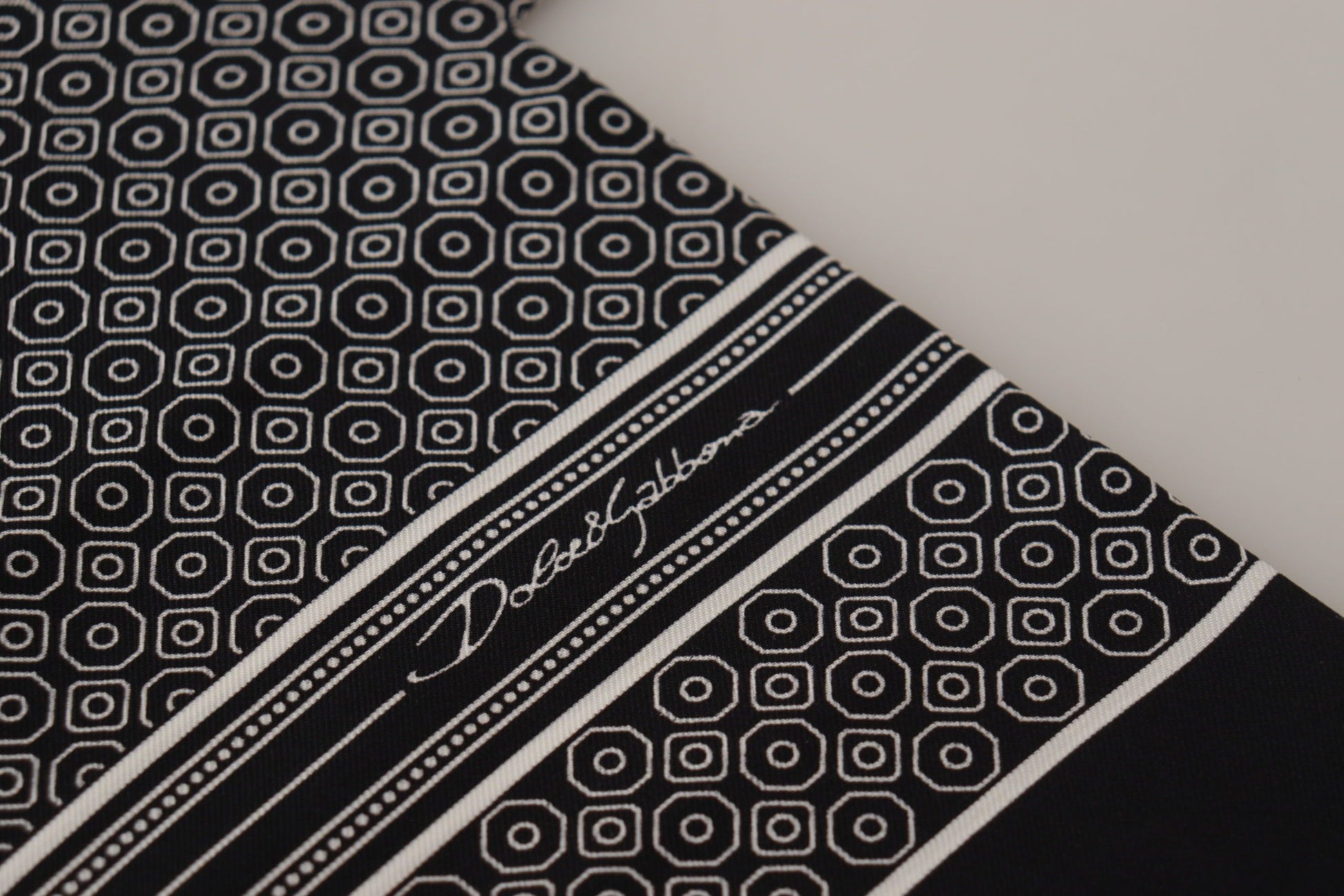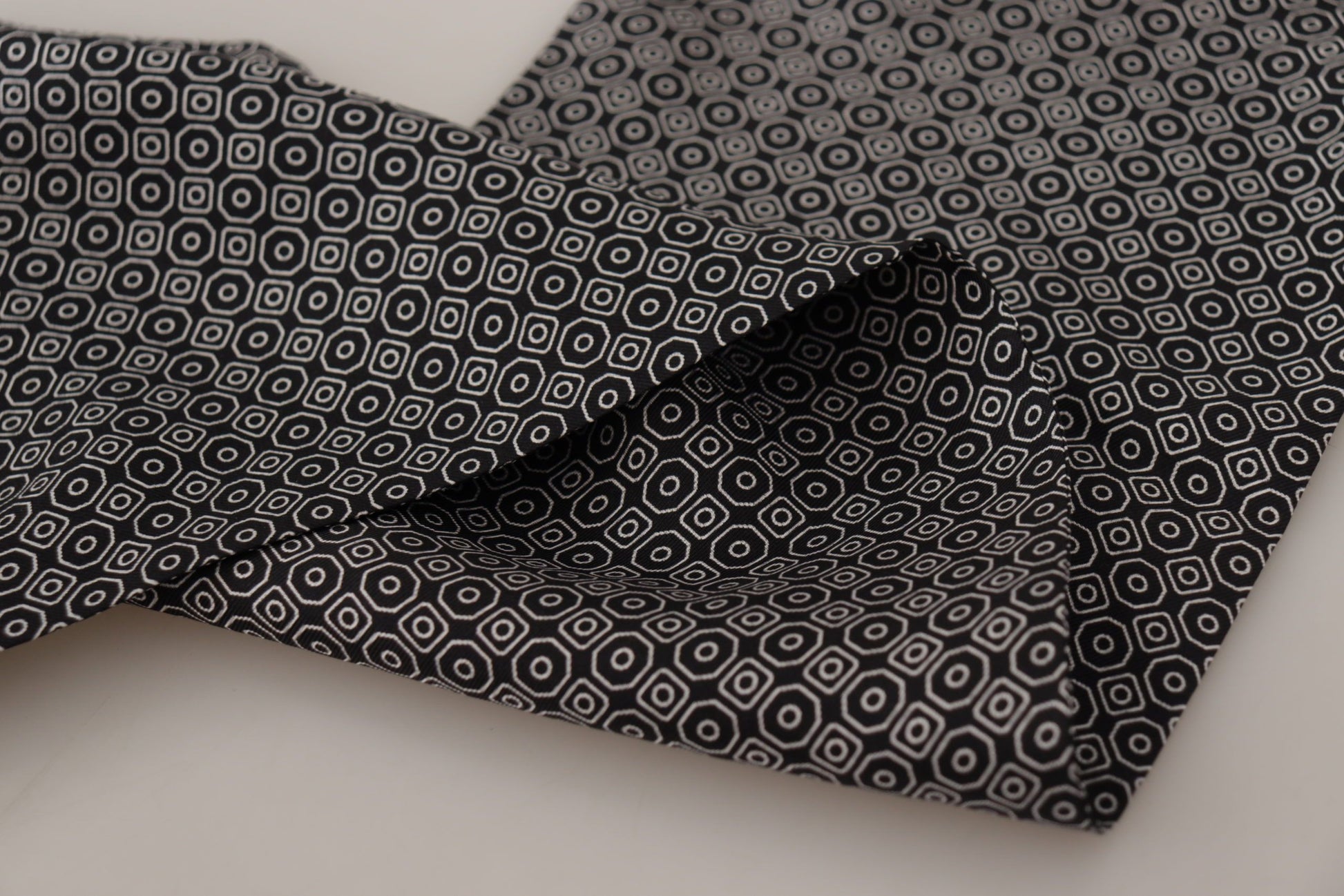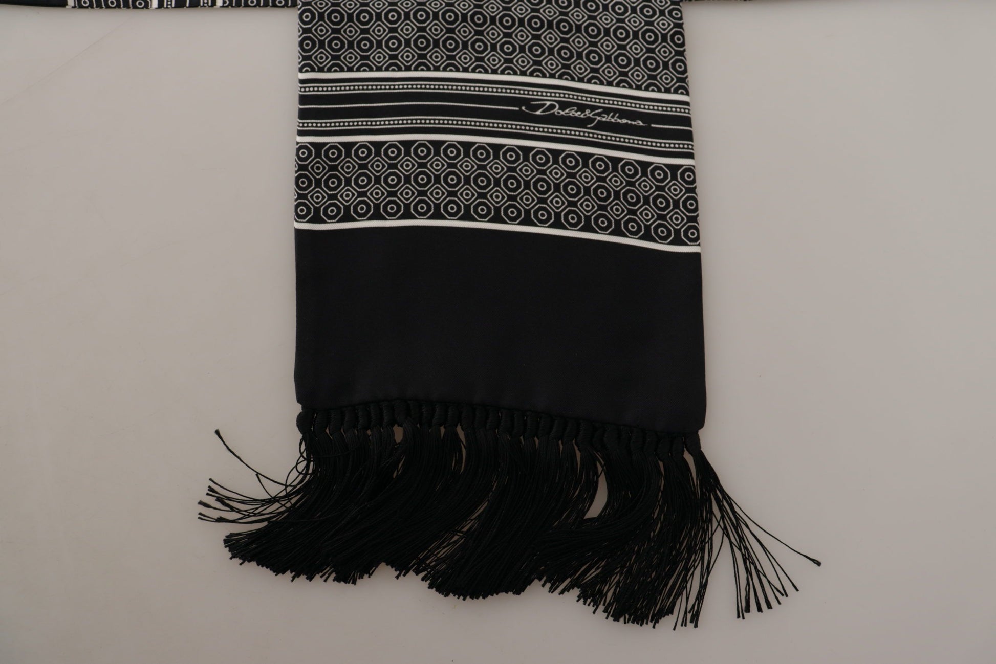 Black White 100% Silk Geometric Shawl Fringe Scarf