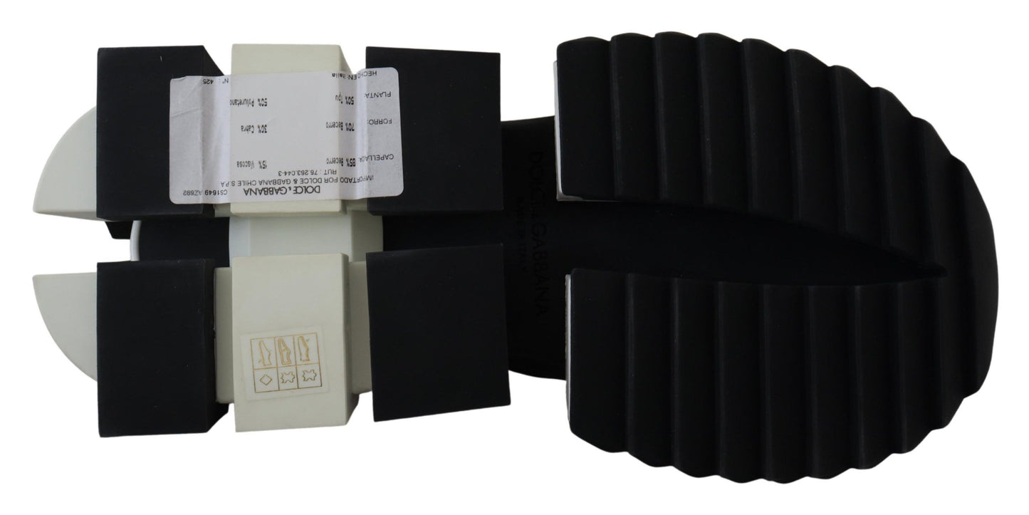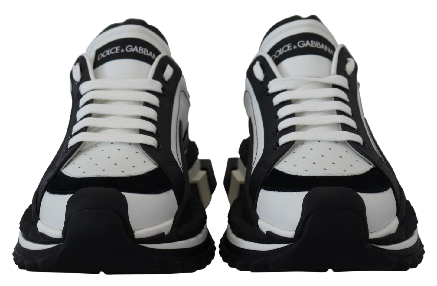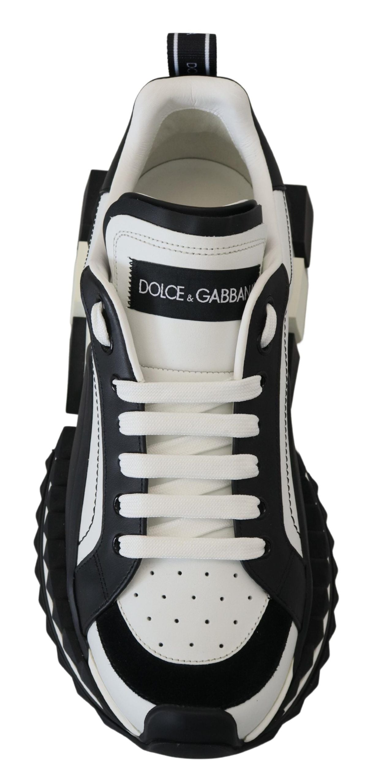 Step into luxury with these elegant Super King Sneakers by Dolce & Gabbana. Brand new with tags, these sneakers exude modern sophistication. Crafted from premium leather and designed in a crisp white and black palette, they are perfect for adding a touch of class to any outfit. The sturdy rubber sole ensures durability and comfort, while the iconic logo details add an exclusive touch of designer appeal. Made in Italy, these shoes are a testament to quality craftsmanship.