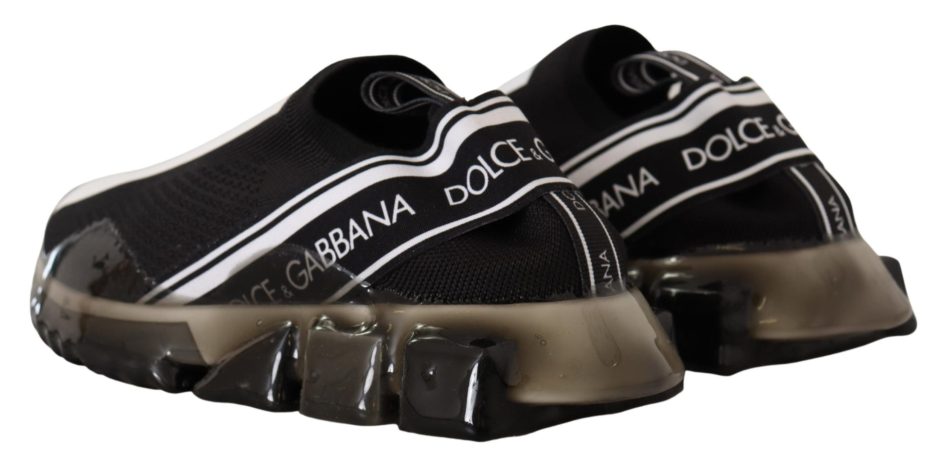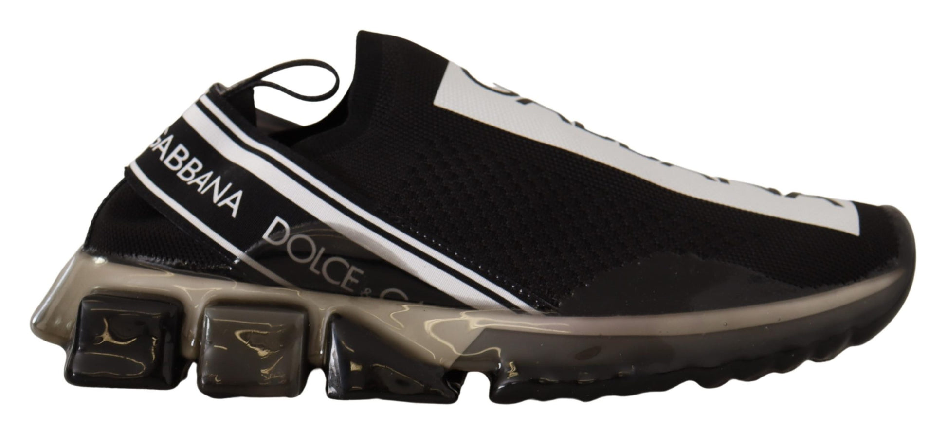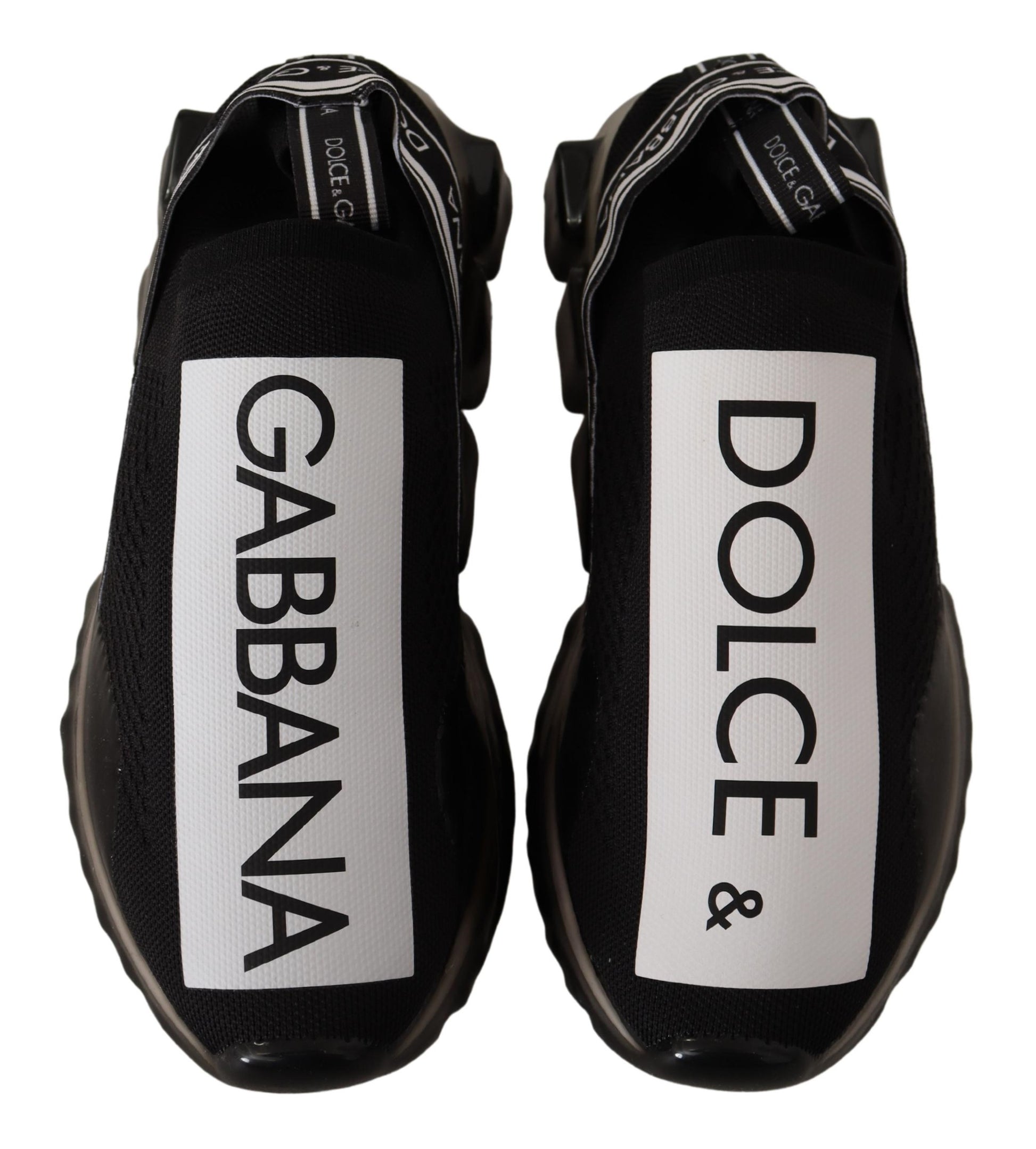 Indulge in the ultimate blend of luxury and cutting-edge style with these Gorgeous, brand new black Sorrento Sneakers by Dolce & Gabbana. These sneakers are a testament to high Italian craftsmanship, designed to elevate your casual ensembles with a touch of sophistication and sporty elegance. The sleek black and white color palette ensures versatility and a timeless appeal, ready to complement your fashionable wardrobe.