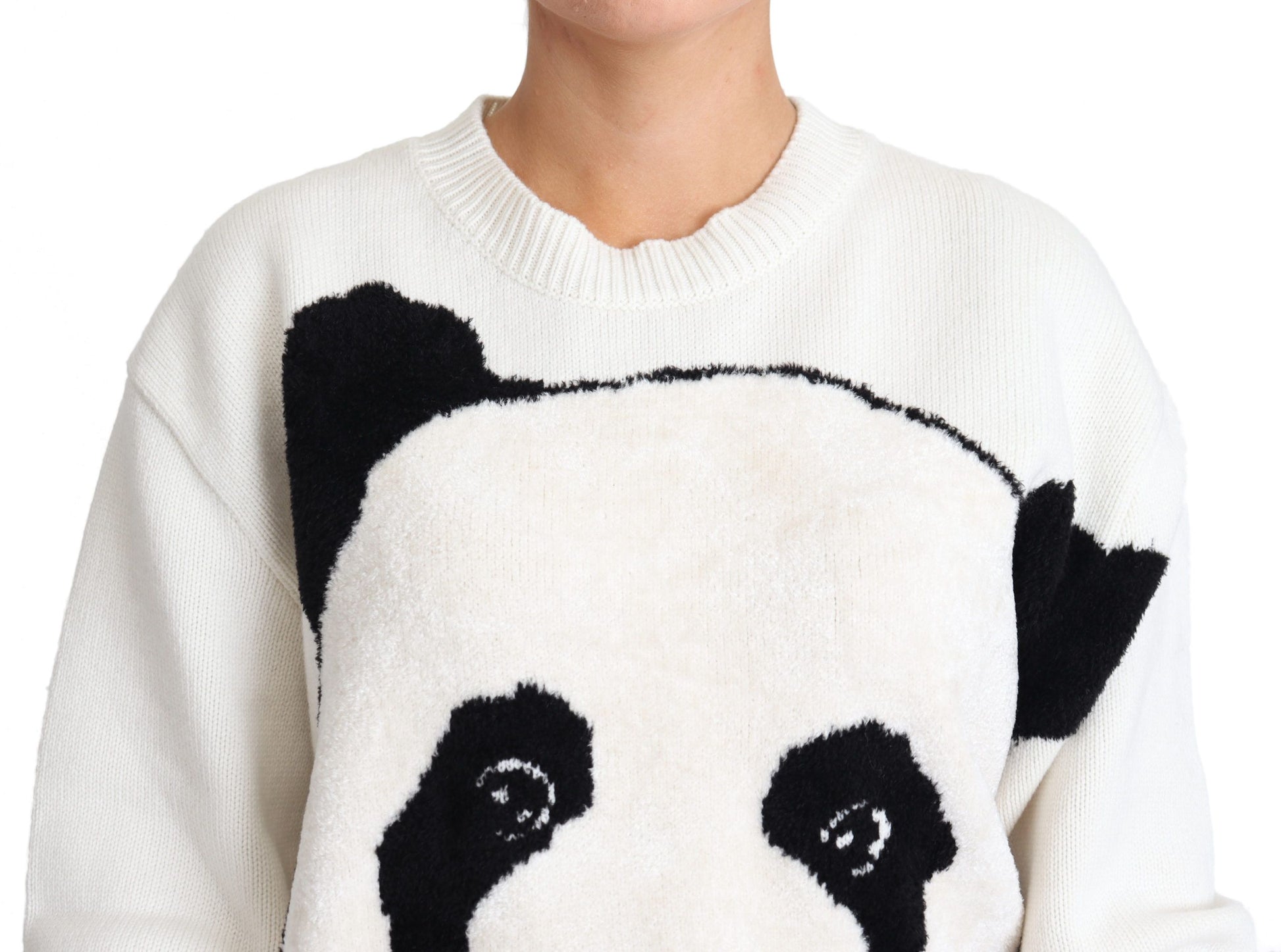 Indulge in the comfort of Italian luxury with Dolce & Gabbana’s stunning black and white sweater, featuring a playful panda bear jacquard. Crafted from a sumptuous blend of cashmere, silk, and more, this cozy piece boasts a refined regular fit, a classic ribbed crewneck, and eye-catching striped cuffs for an extra touch of elegance. Perfect for elevating your knitwear collection.