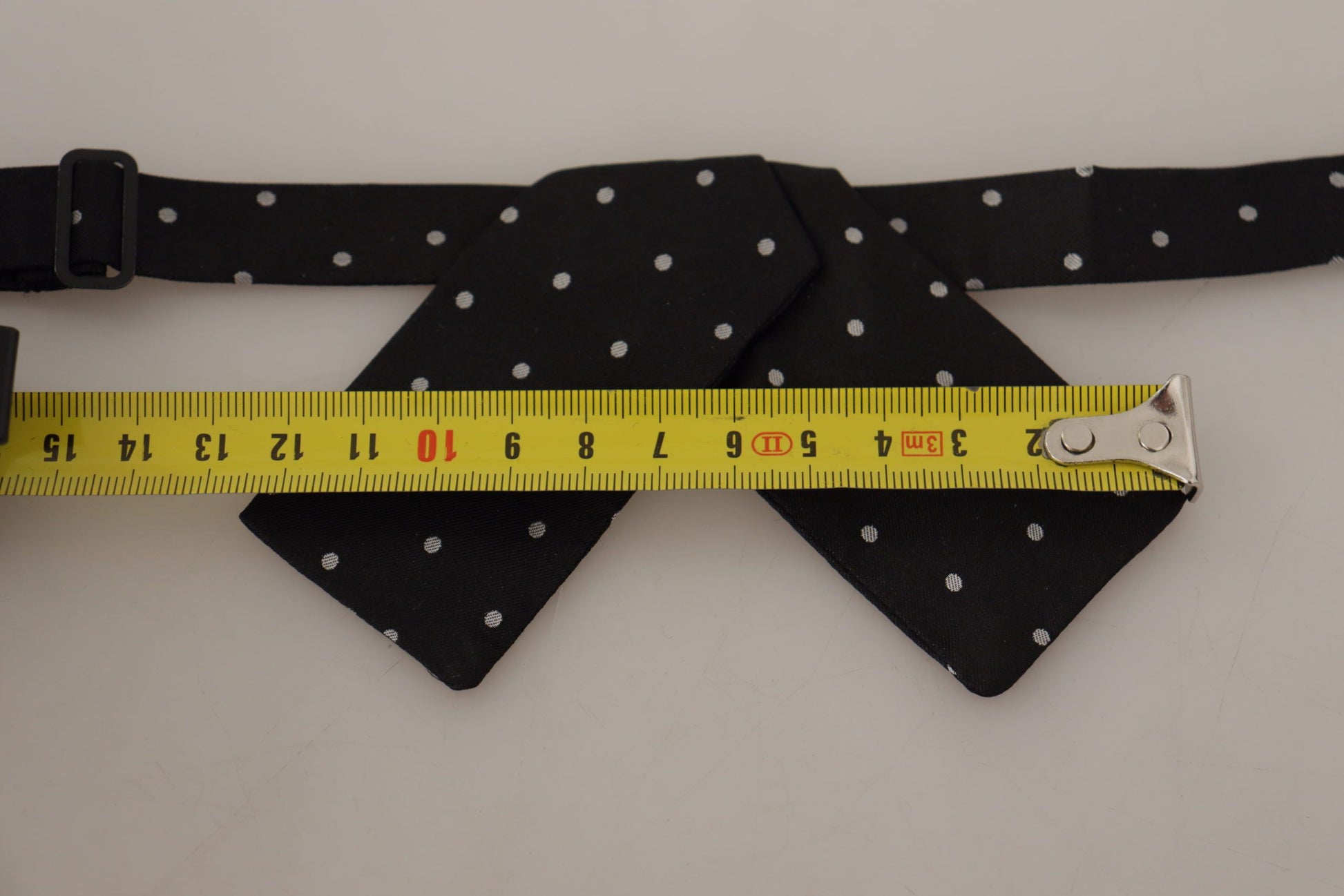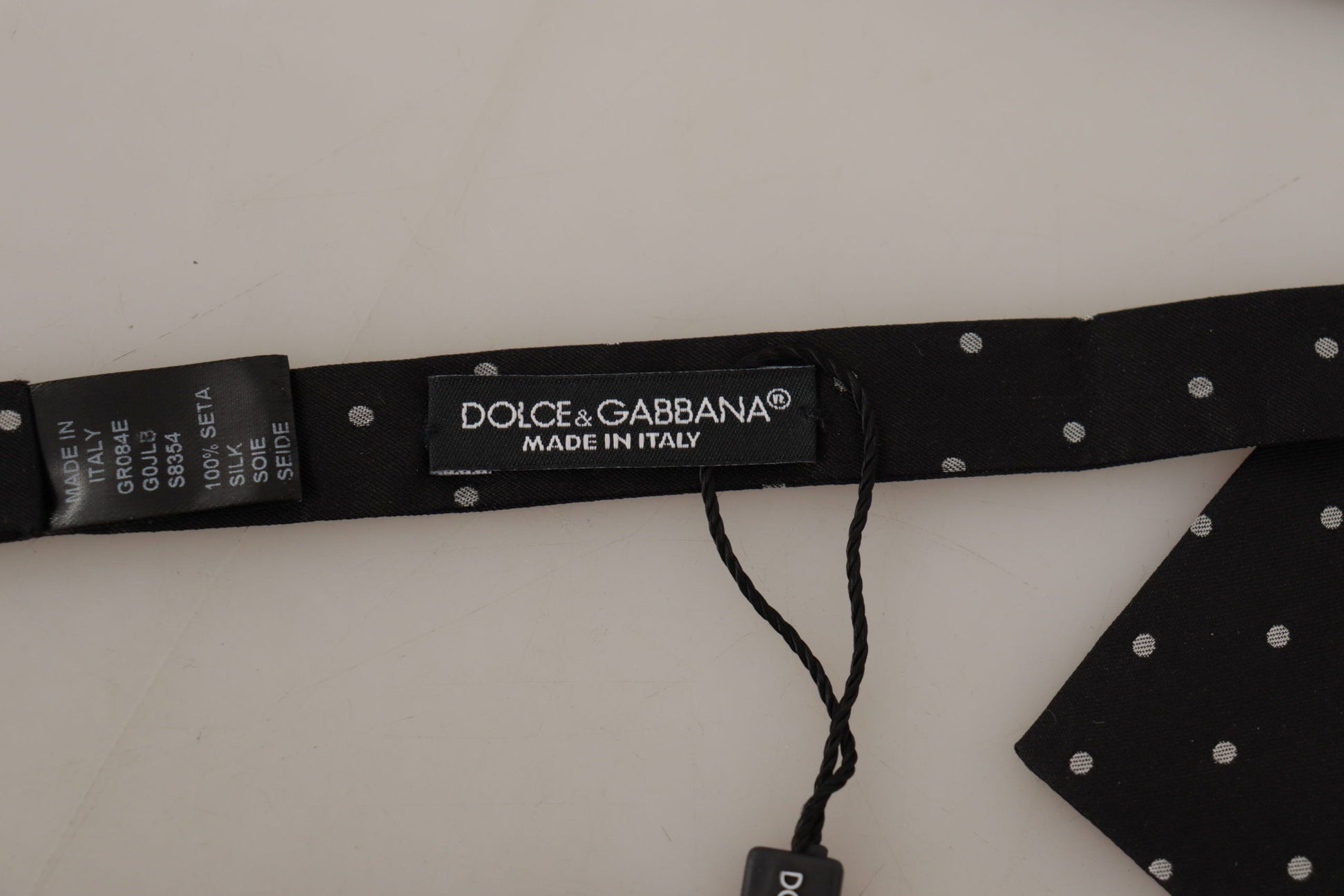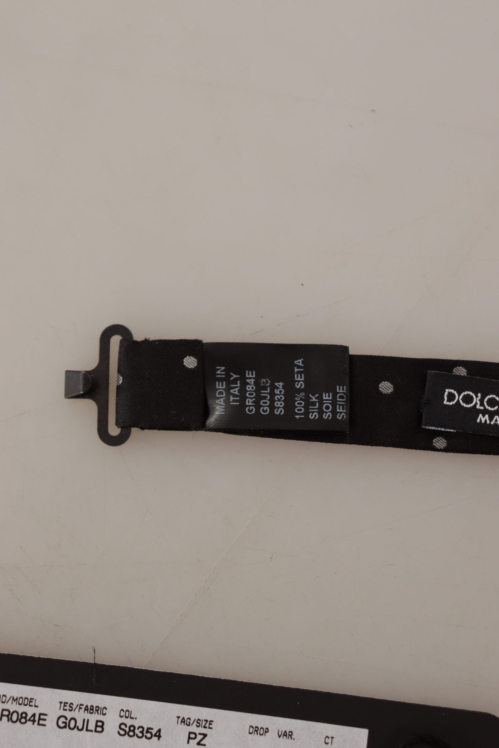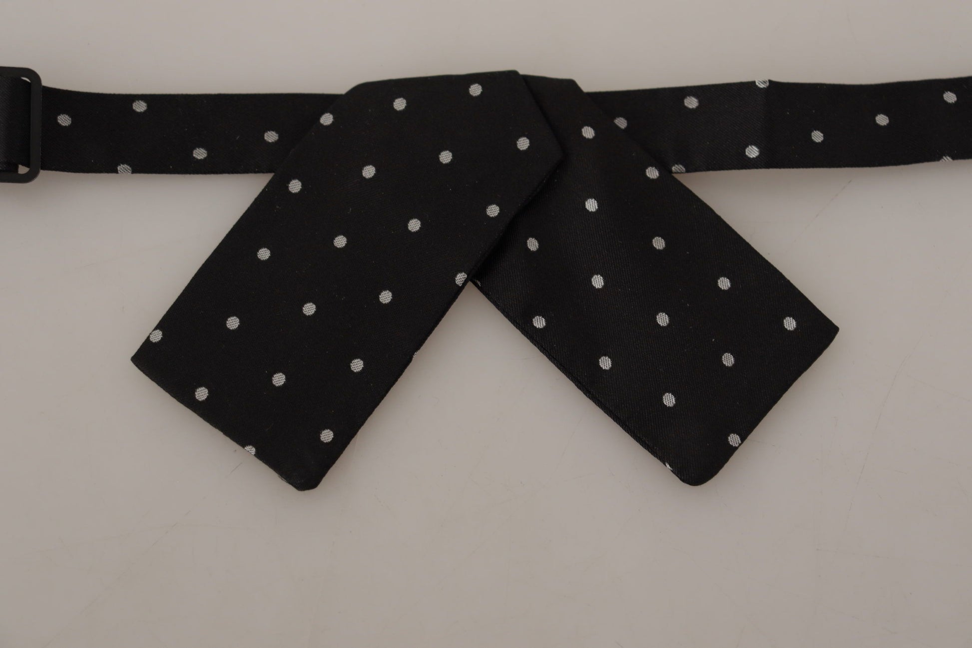 Step into sophistication with this stunning Dolce & Gabbana bow tie, perfect for adding a touch of elegance to your formal attire. This 100% silk accessory features a classic polka dot design in a timeless black and white color scheme, ensuring you stand out at any high-end event or special occasion. Crafted in Italy, this bow tie promises uncompromising quality and style, complete with an adjustable neck strap for a perfect fit. Original tags and the store bag are included, making this exquisite piece an ideal addition to your luxury collection or as a thoughtful gift.