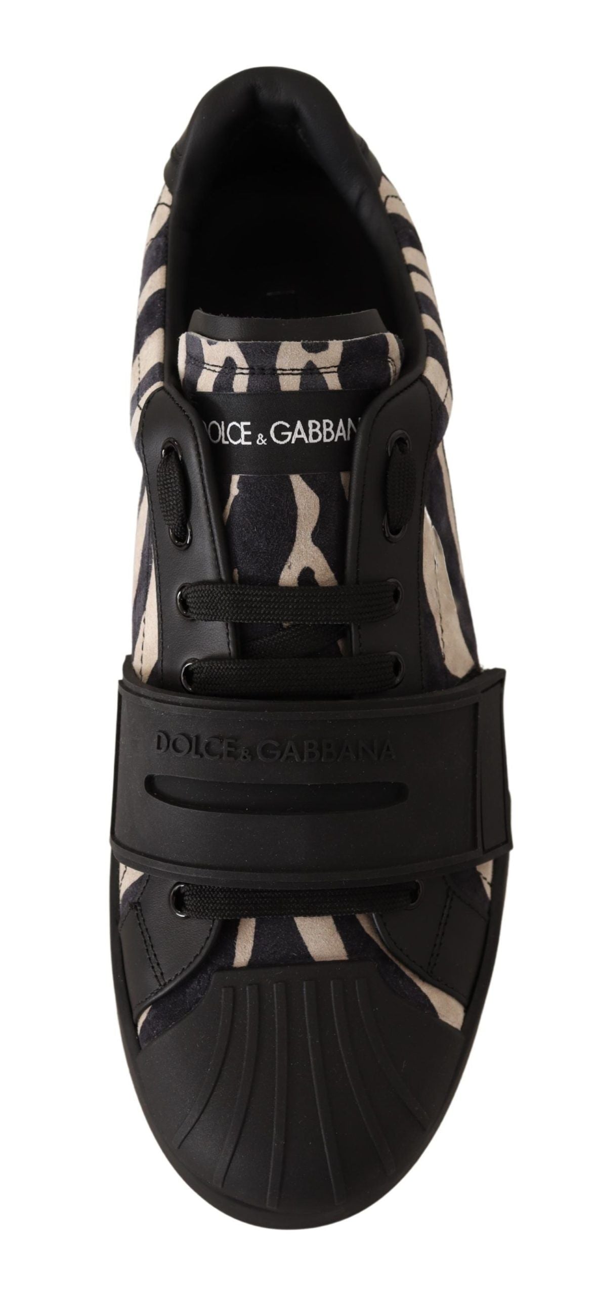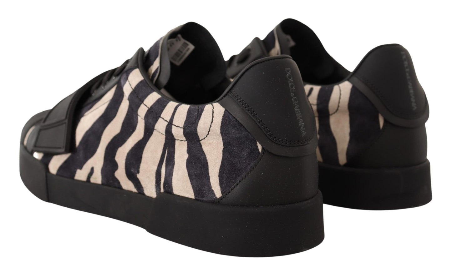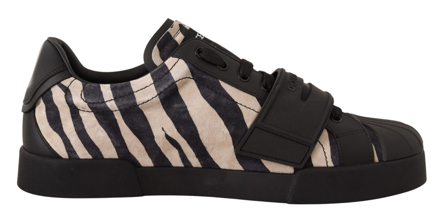 Step into bold style with these striking Zebra-Inspired Casual Low Top Sneakers by Dolce & Gabbana. Gorgeous and brand new with tags, these 100% Authentic shoes embody the perfect blend of high-fashion and streetwear. Made in Italy, these sneakers feature a unique black and white zebra print on suede rubber, with both lace and Velcro strap closures for a snug fit. The durable rubber soles are built for both comfort and longevity, complete with the iconic logo detail for that touch of luxury.