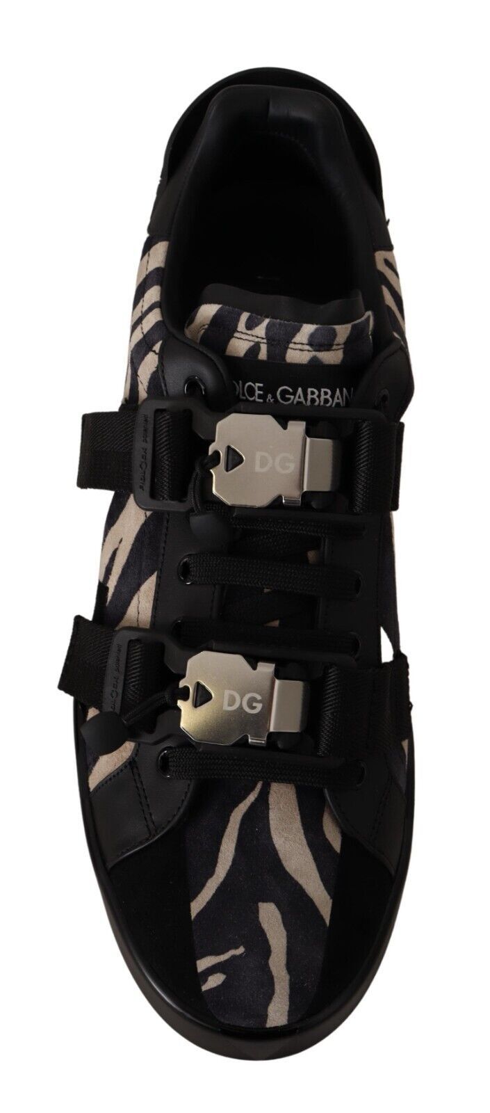 Step into the wild side of luxury with these stunning sneakers from Dolce & Gabbana. Crafted with care in Italy, these low top casual sneakers feature an eye-catching black and white zebra pattern that will make a bold statement with any outfit. The supple suede and durable rubber construction ensure a comfortable fit and long-lasting wear. With a lace-up front and an additional buckle closure for a secure fit, these sneakers are as practical as they are stylish. The discreet logo detail adds a touch of designer flair, making them a must-have for any fashion-conscious individual.