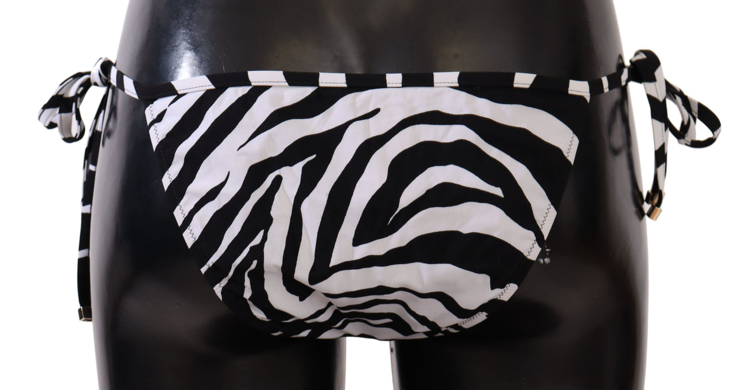Step into the wild with these exquisitely designed Zebra Print Bikini Bottom by Dolce & Gabbana. Crafted with care in Italy, this eye-catching piece is not only gorgeous but boasts the premium quality of Dolce & Gabbana. Featuring an adjustable drawstring fastening for the perfect fit, complete with logo details for an added touch of luxury. Ideal for making a stylish statement by the pool or on the beach.
