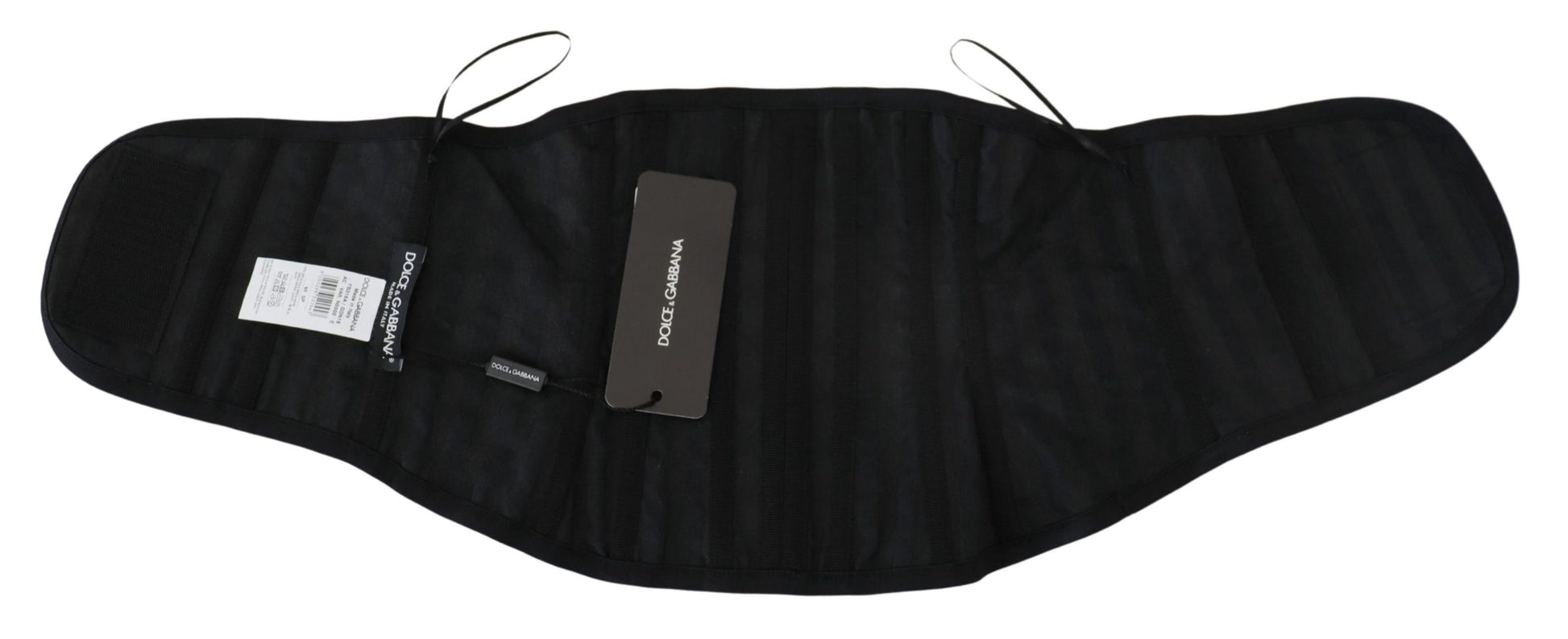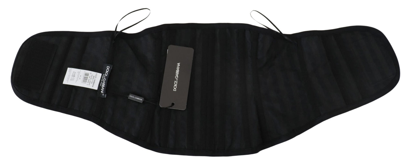 Accentuate your silhouette with the opulence of this high-quality silk belt. A striking addition to any wardrobe, this piece by Dolce & Gabbana exudes sophistication with its sleek black hue and lustrous silver tone metalwork. It’s an authentic statement accessory designed to elevate your ensemble effortlessly. Ideal for cinching at the waist to highlight your fashion-forward sensibilities.