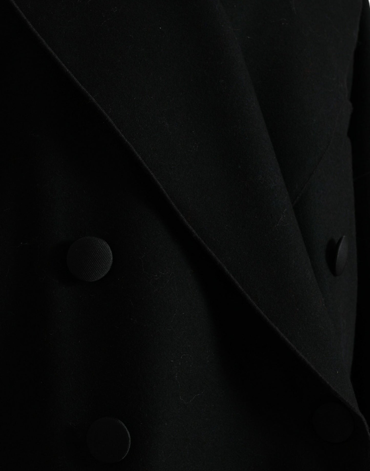 Discover the epitome of Italian elegance with this sophisticated Black Trench Coat from Dolce & Gabbana. Impeccably tailored for a figure-flattering fit, this coat features peak lapels and a classic double-breasted button-front closure, ensuring you make a statement wherever you go. Perfect for adding a touch of luxury to any ensemble, its exquisite craftsmanship and the brand’s signature attention to detail make it a wardrobe essential for those who appreciate high-end fashion.
