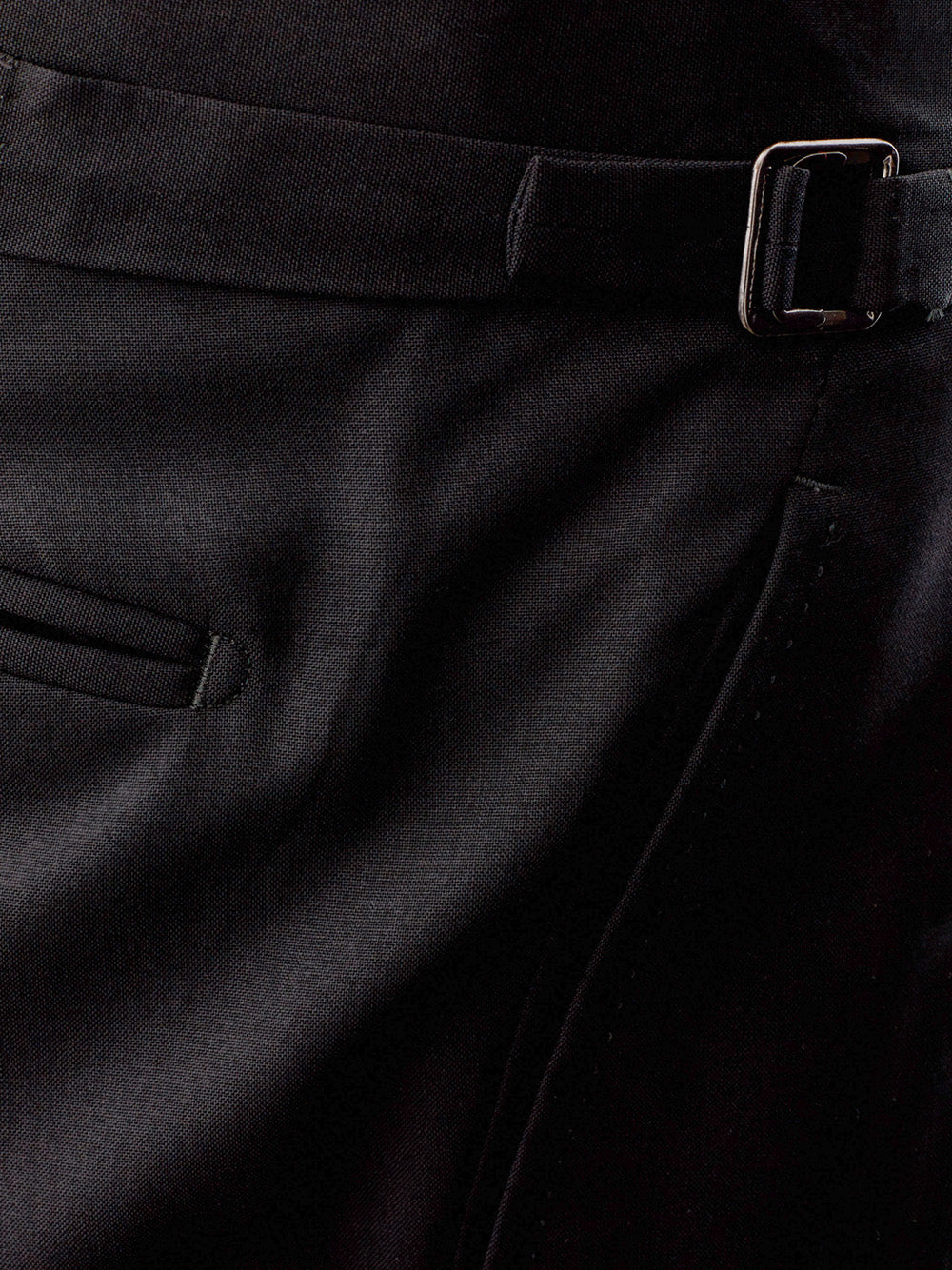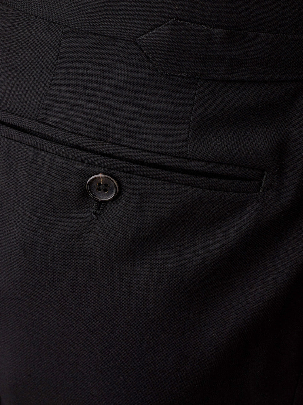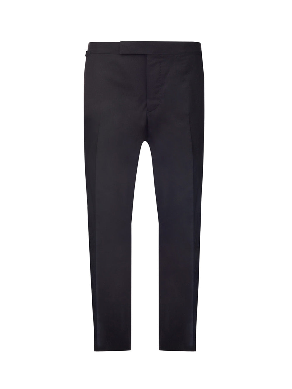 Gorgeous brand new with tags, 100% Authentic Tom Ford trousers. Exuding elegance with their sleek black color, these trousers are tailored in Italy for a regular fit. Featuring a clean front closure with hook and zip, they come equipped with two side pockets and two back pockets, ensuring both style and functionality.