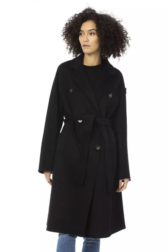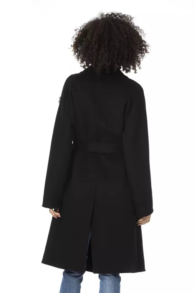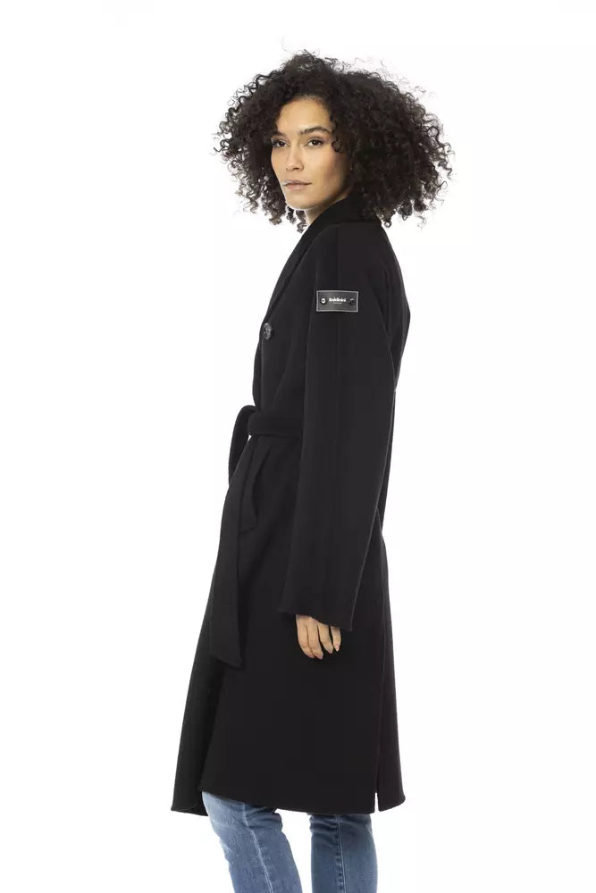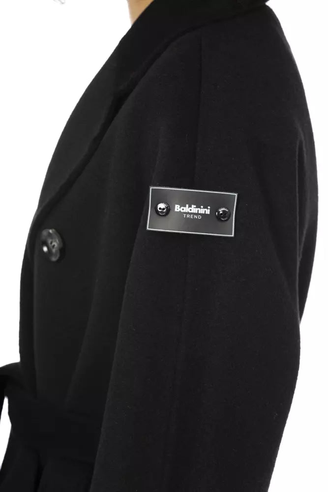 Embrace timeless elegance with this luxurious Wool-Blend Trench Coat from the renowned Baldinini Trend collection. Designed to enhance your silhouette with a figure-accentuating waist belt, this piece is the epitome of chic outerwear. Functional external welt pockets and the sleek front button closure meld practicality with style, while the signature Baldinini monogram in metal adds an exclusive touch of distinction. Whether over evening attire or paired with daywear, this coat is a testament to sophisticated fashion.