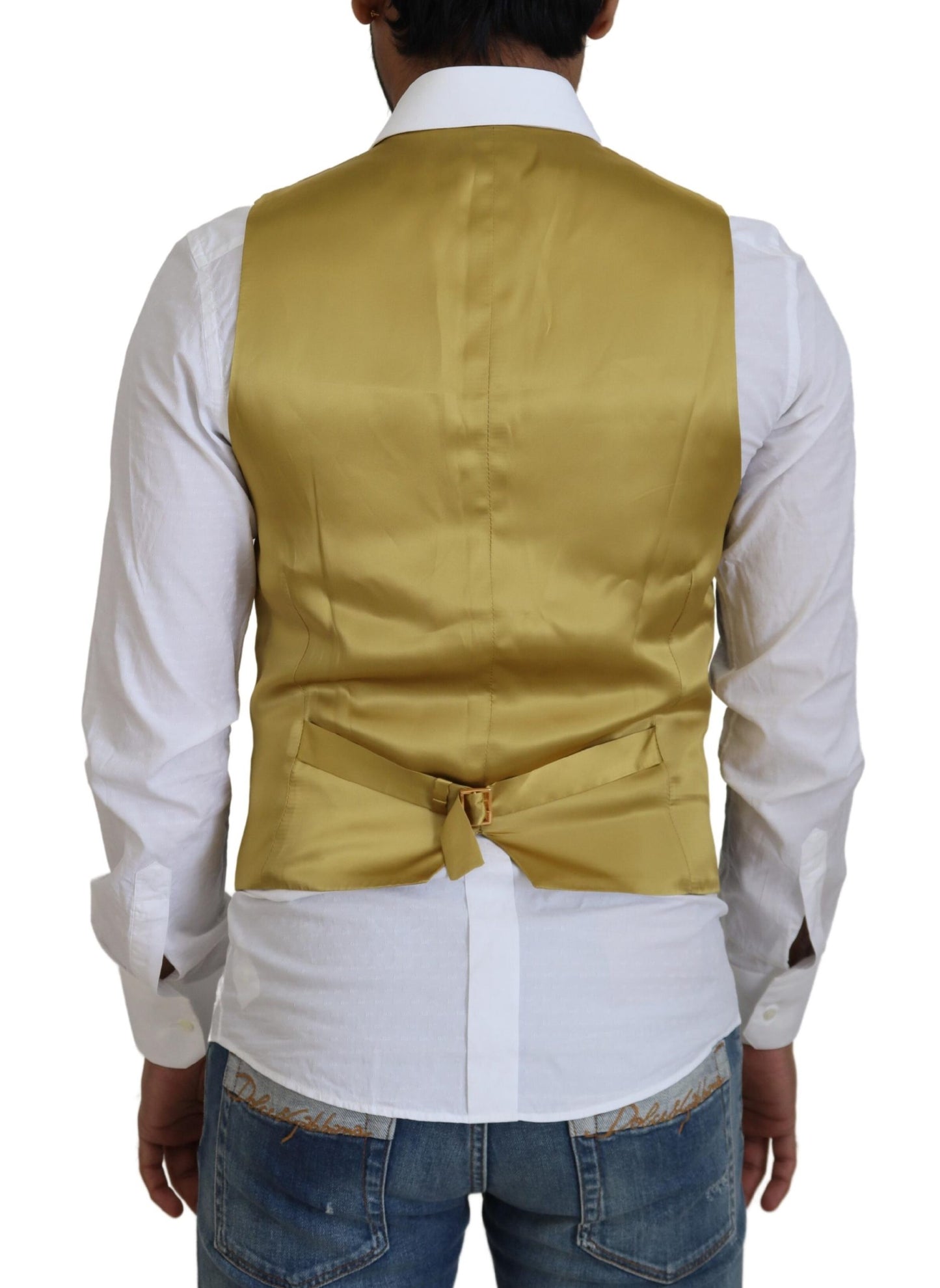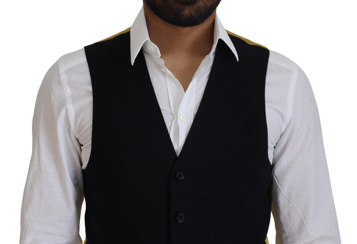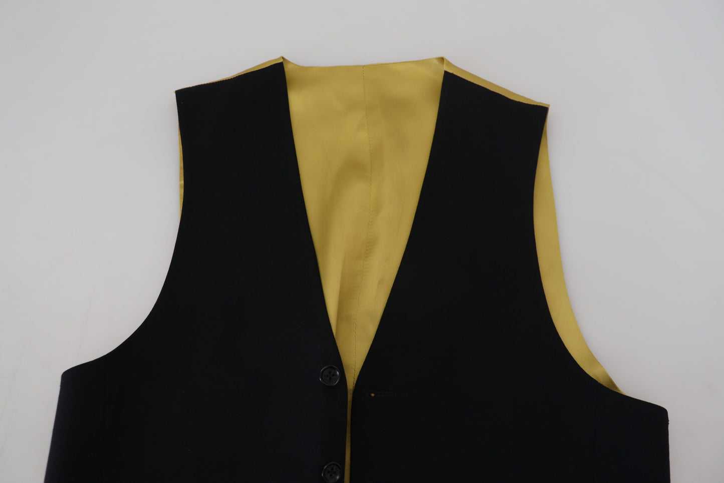 Exude sophistication with this stunning single-breasted dress vest from Dolce & Gabbana. The epitome of sartorial elegance, this piece is perfect for those who appreciate the true luxury of finely crafted garments. With its sleek black color, punctuated by gold accents, it’s a versatile addition to any formal attire.