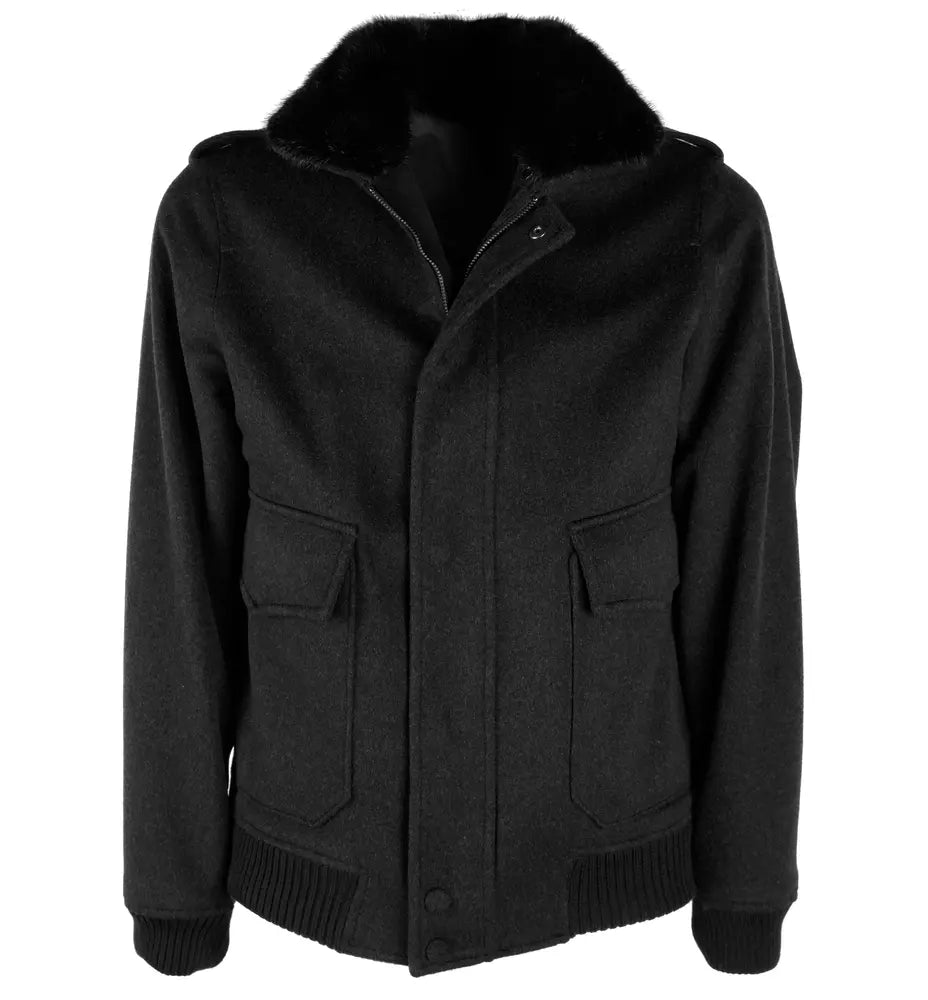 Elegant Virgin Wool Men's Bomber with Fur Collar