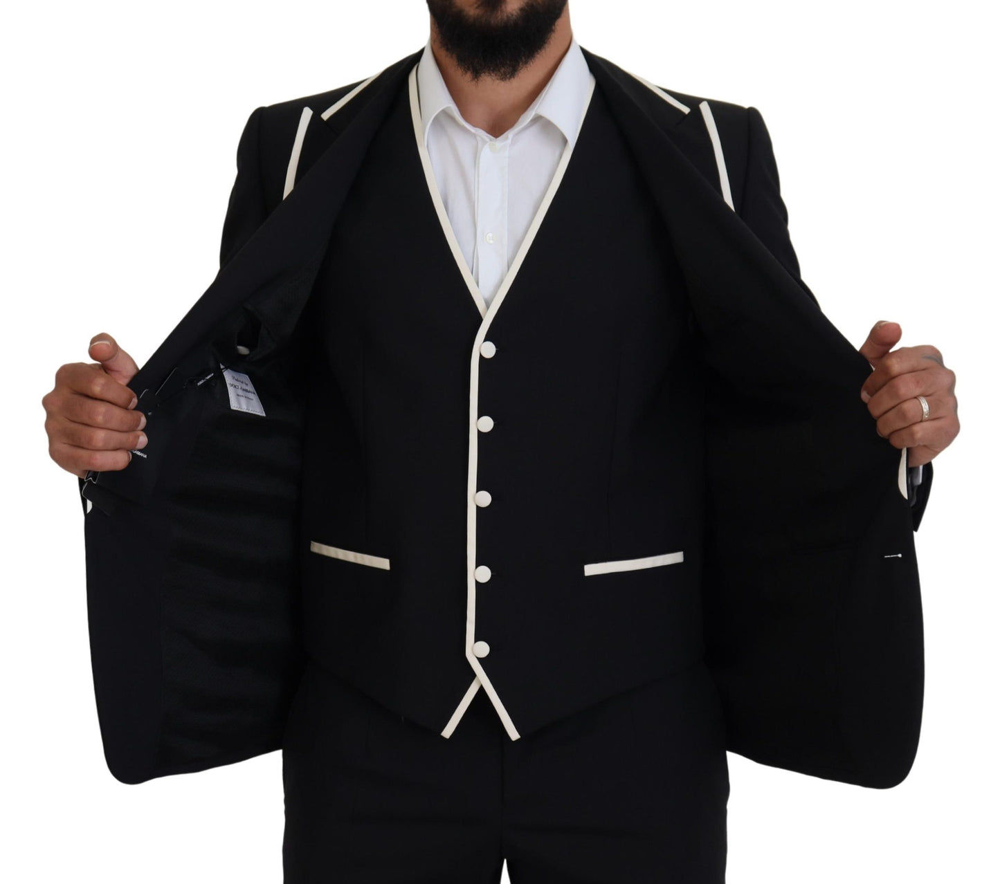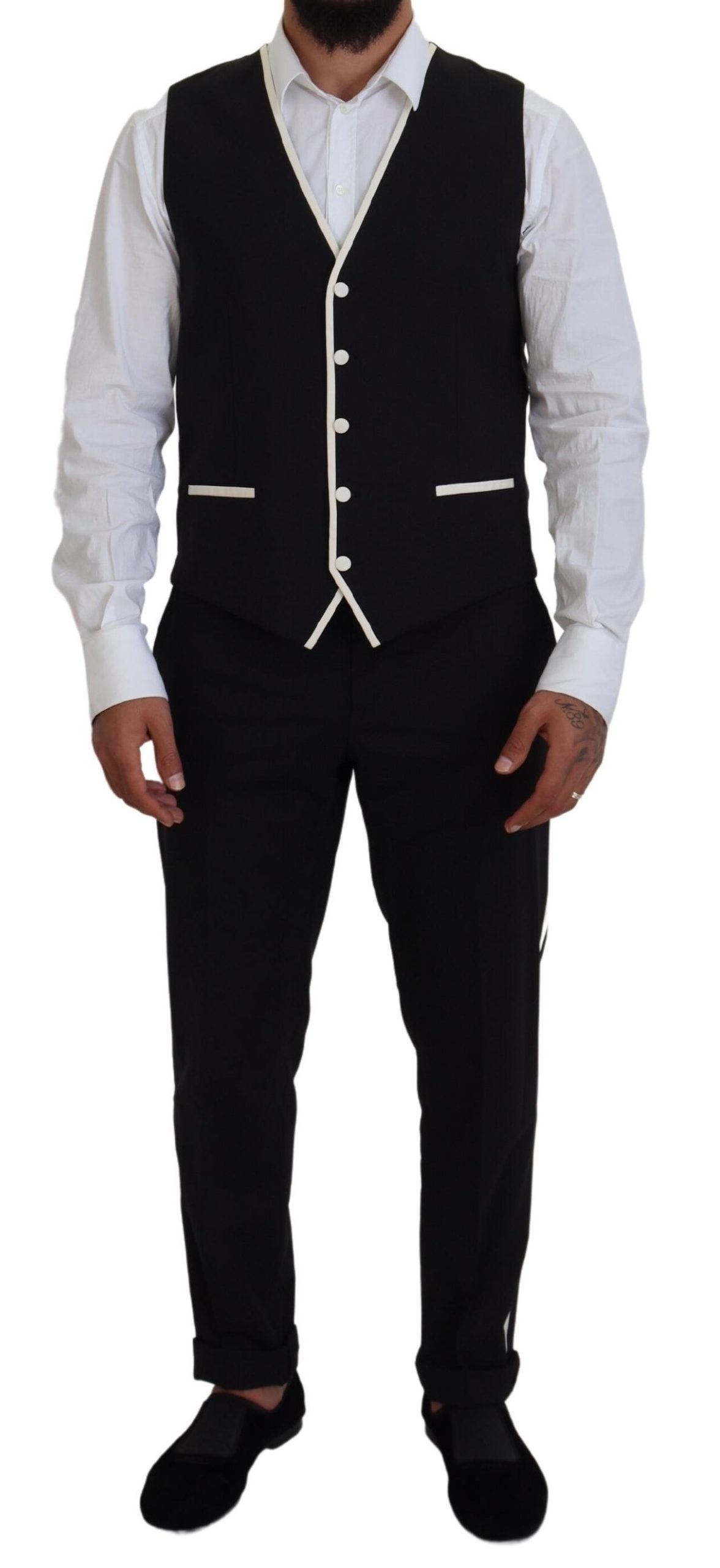 Step into a world of sophisticated elegance with this pristine Dolce & Gabbana three piece suit. Crafted with a keen eye for detail, this suit is a testament to premium quality and timeless style. Its slim fit cut assures a sleek silhouette, perfect for making a lasting impression at any formal occasion. The luxurious blend of materials ensures not only a sharp look but also unmatched comfort and durability.