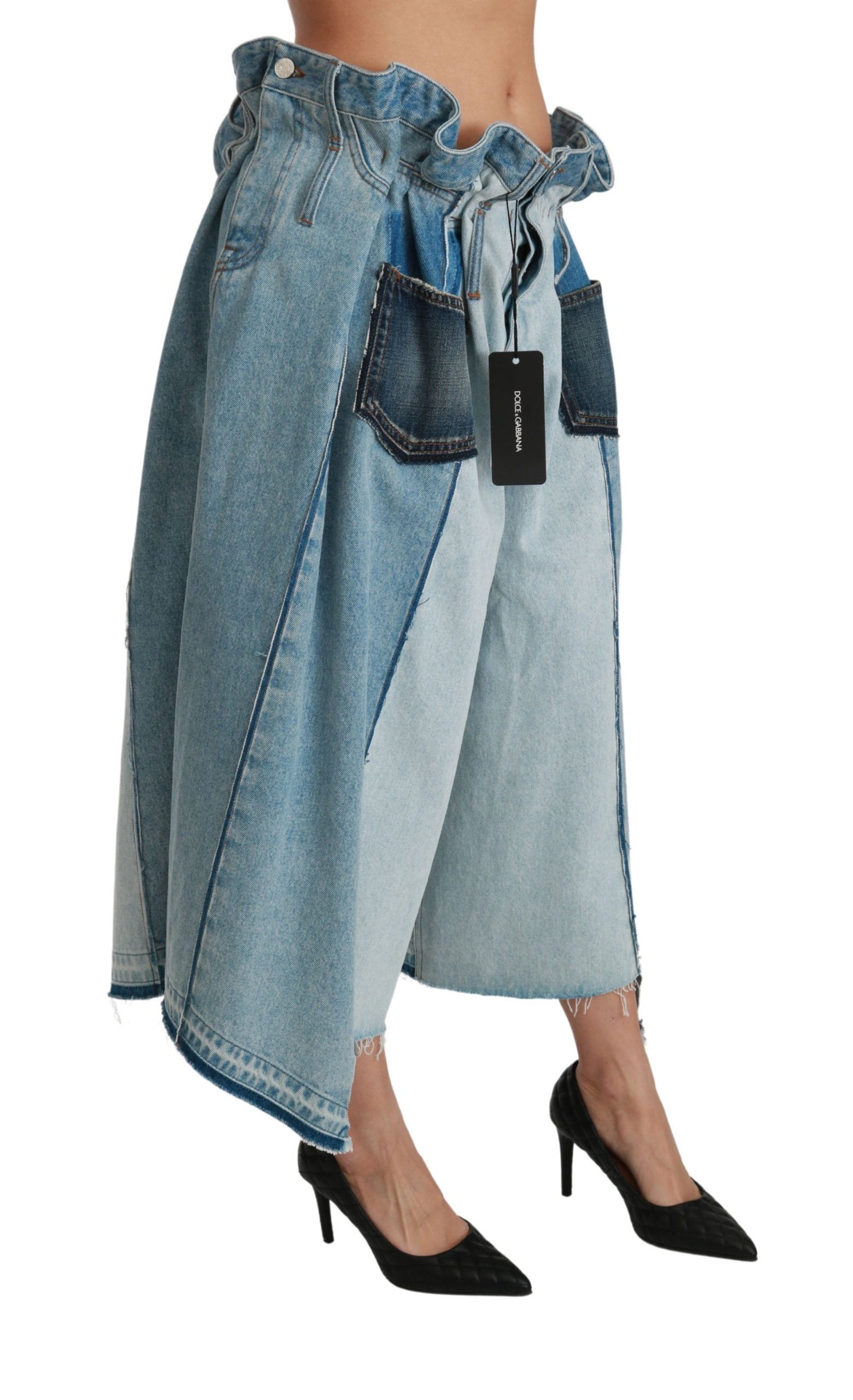 Exude timeless sophistication with these luxurious Dolce & Gabbana mid waist wide leg jeans. Perfectly crafted from 100% cotton, these jeans are a testament to your impeccable style. With their elegant wide leg cut and classic blue color, they offer both comfort and elegance. Complete with authentic logo details, these jeans are made in Italy, ensuring the finest quality and craftsmanship.
