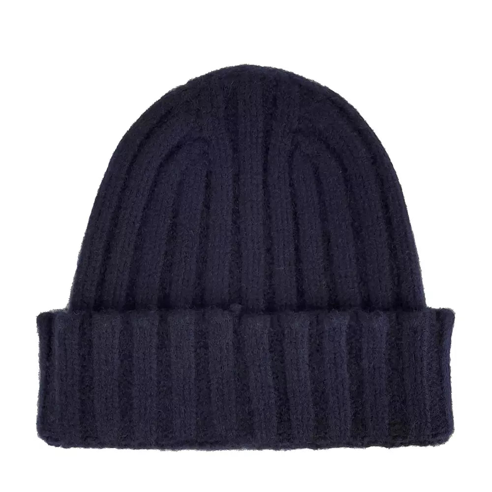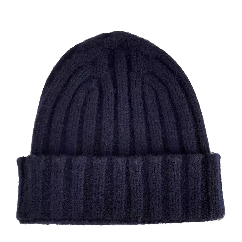 Elegant Blue Cashmere Hat with Ribbed Seam