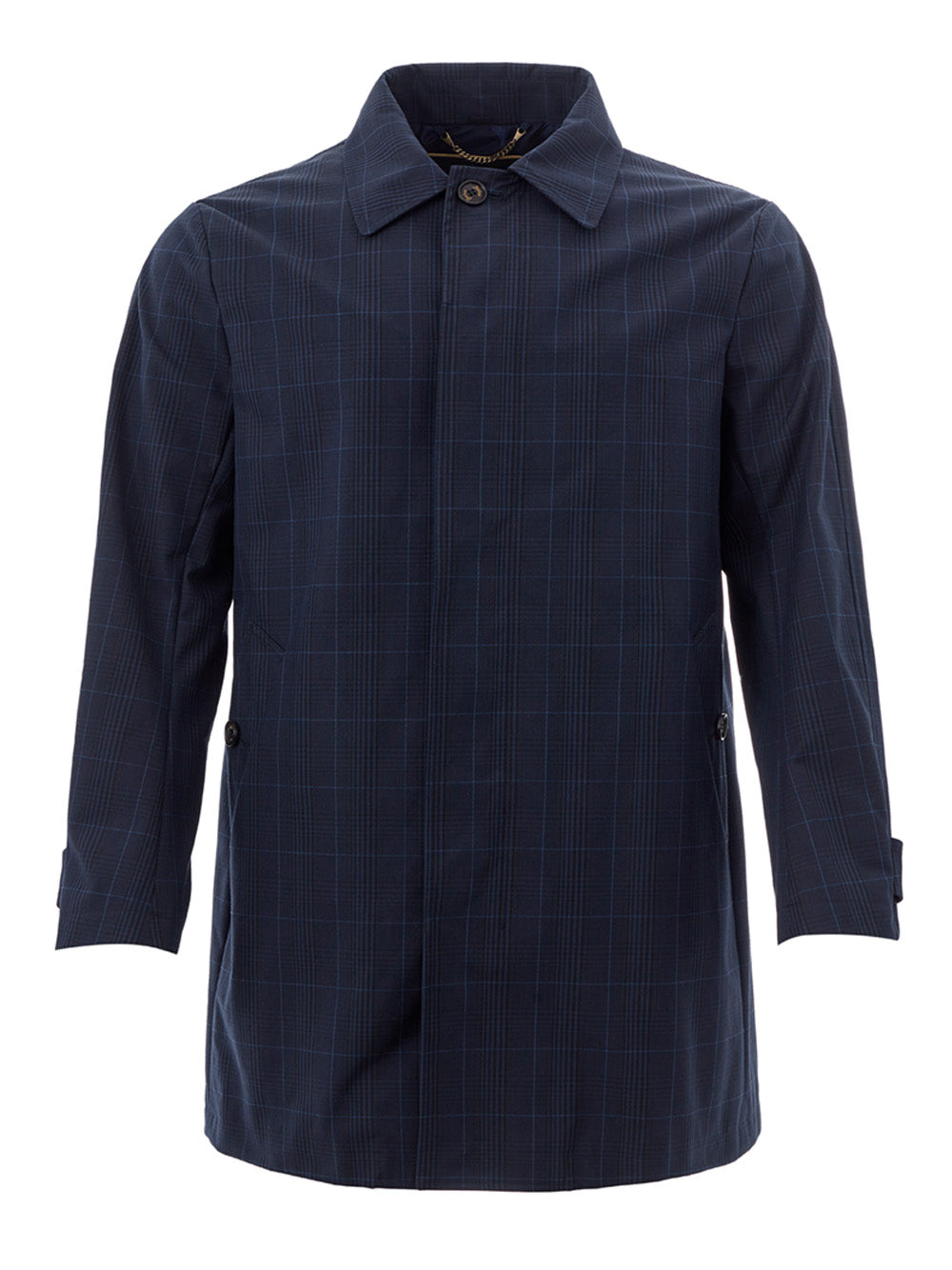 Gorgeous brand new with tags, 100% Authentic Sealup jacket. This blue checked midi-length piece adds a touch of sophistication to your wardrobe. With a stylish front button closure and side pockets, this jacket features a unique waxed fabric effect and a classic French collar. It’s a versatile addition to both casual and formal ensembles, crafted with meticulous attention to detail.