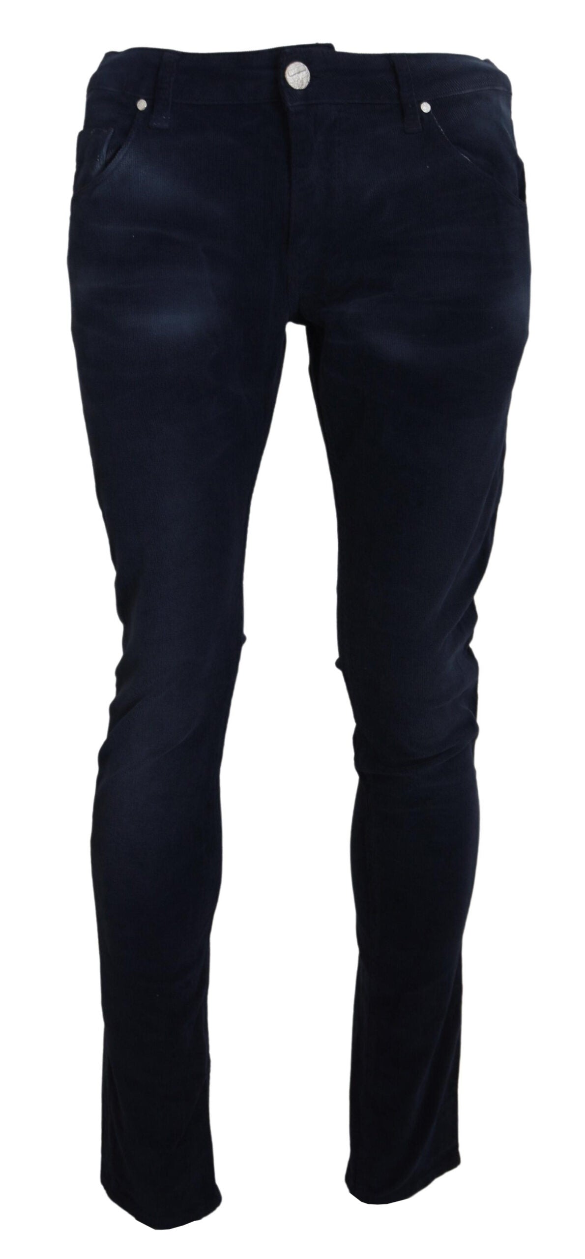 Blue Cotton Corduroy Slim Stretch Men Jeans