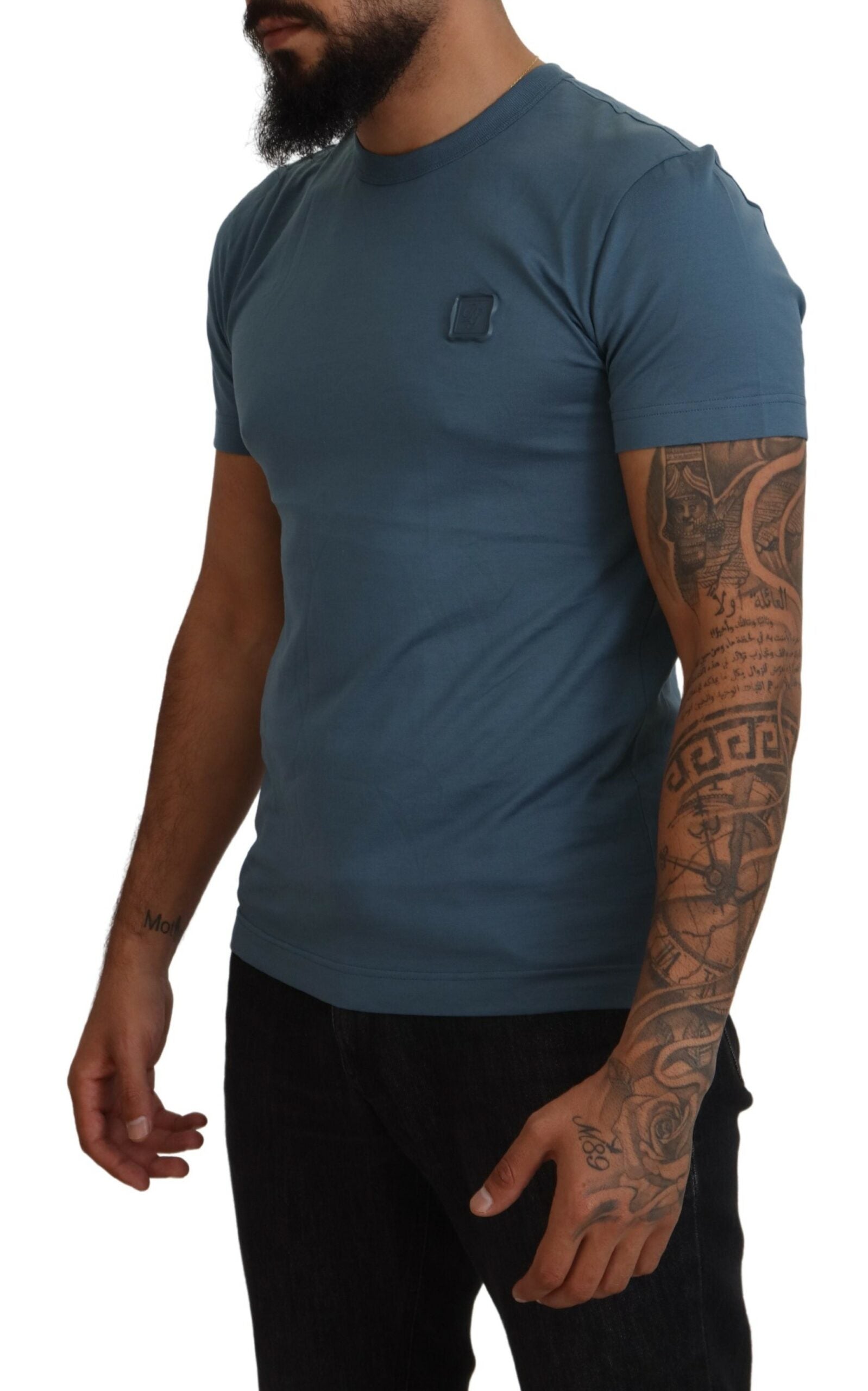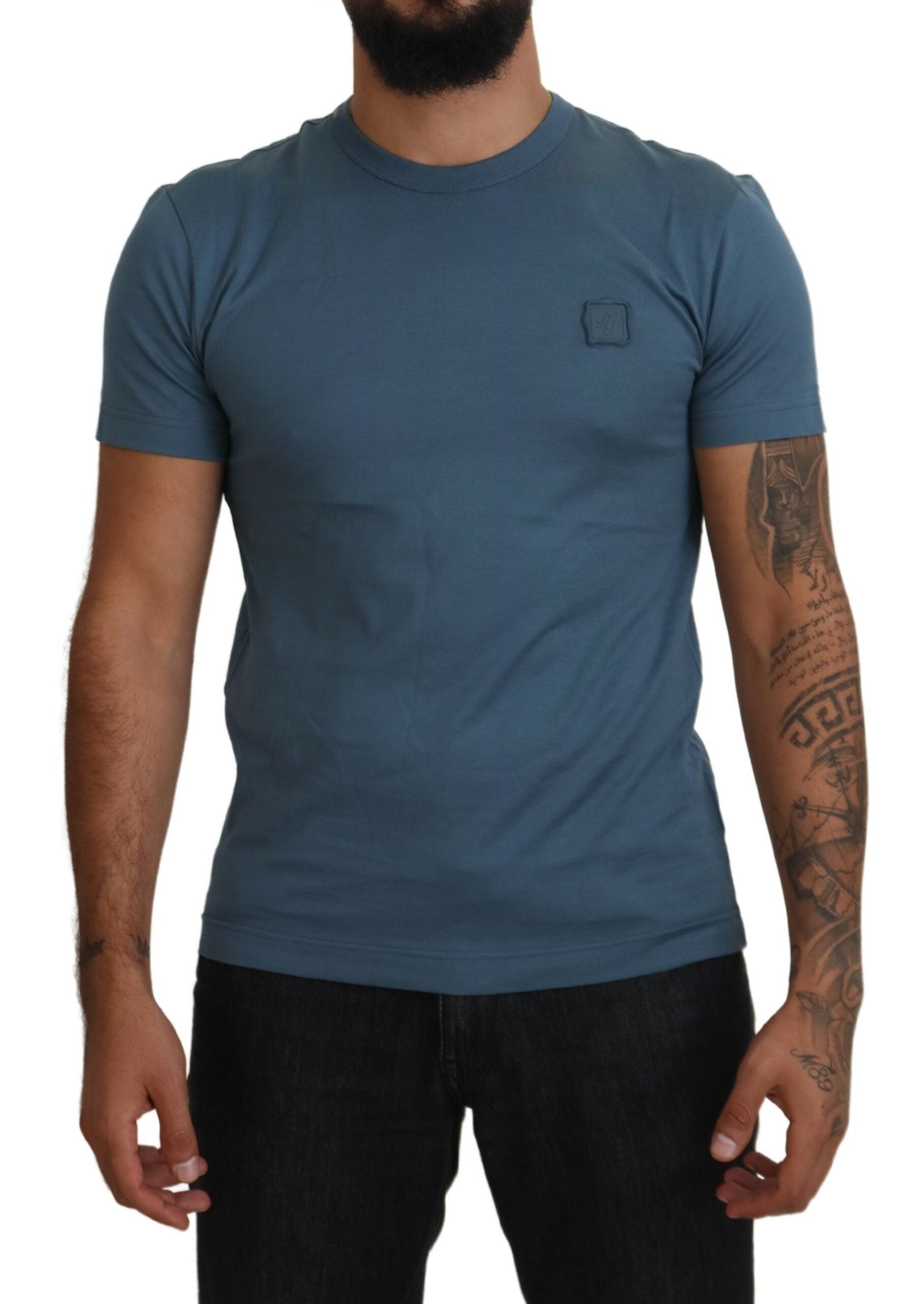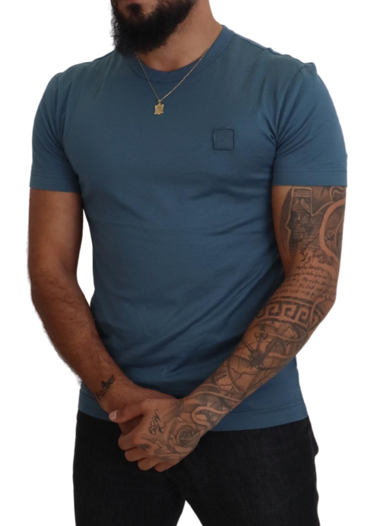 Indulge in the elegance of Italian fashion with a touch of casual finesse. This gorgeous, brand new T-shirt from Dolce & Gabbana is not only a nod to contemporary style but also a celebration of comfort. Crafted from the finest 100% cotton, it ensures a regular fit that’s perfect for any day of the week. The distinctive DG logo plaque adds a luxurious edge to this classic blue crew neck shirt, making it an essential addition to your wardrobe. Exuding charm and craftsmanship in every thread, it’s more than just a piece of clothing—it’s a statement.