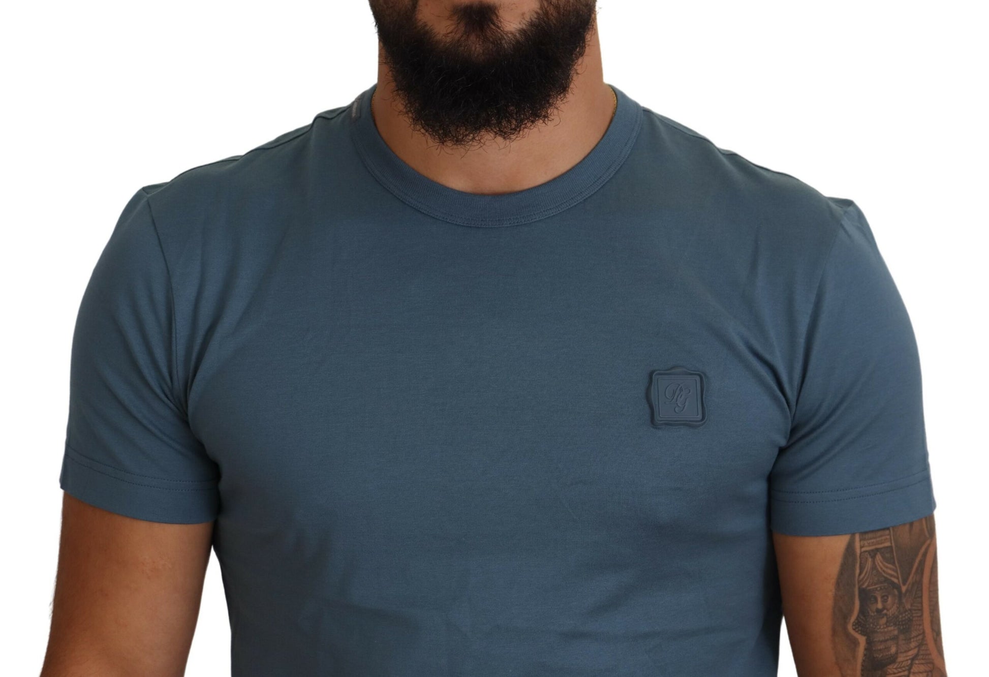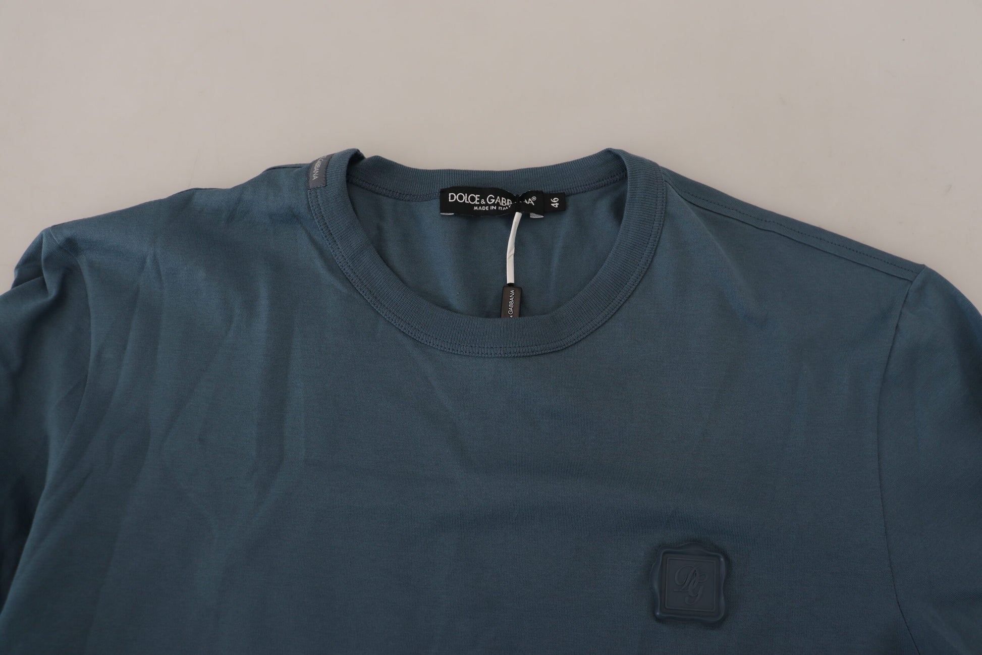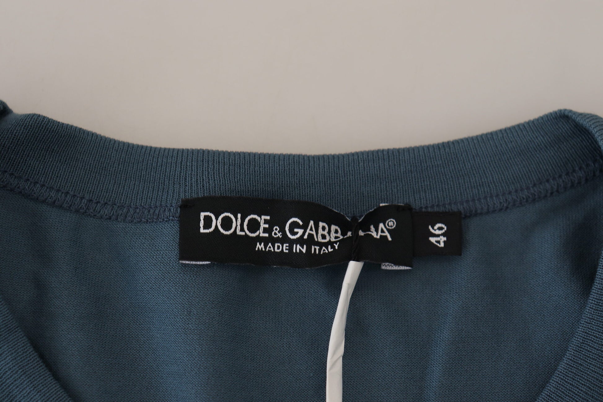 Indulge in the elegance of Italian fashion with a touch of casual finesse. This gorgeous, brand new T-shirt from Dolce & Gabbana is not only a nod to contemporary style but also a celebration of comfort. Crafted from the finest 100% cotton, it ensures a regular fit that’s perfect for any day of the week. The distinctive DG logo plaque adds a luxurious edge to this classic blue crew neck shirt, making it an essential addition to your wardrobe. Exuding charm and craftsmanship in every thread, it’s more than just a piece of clothing—it’s a statement.