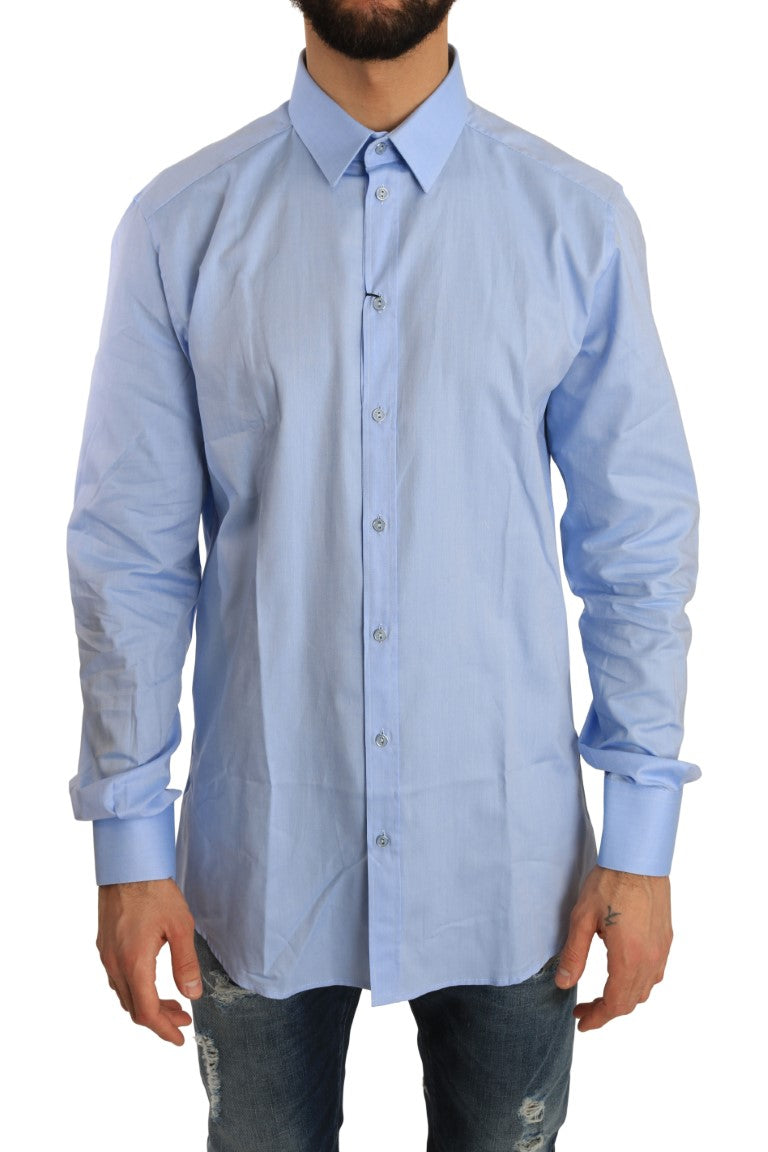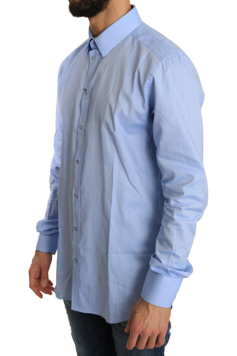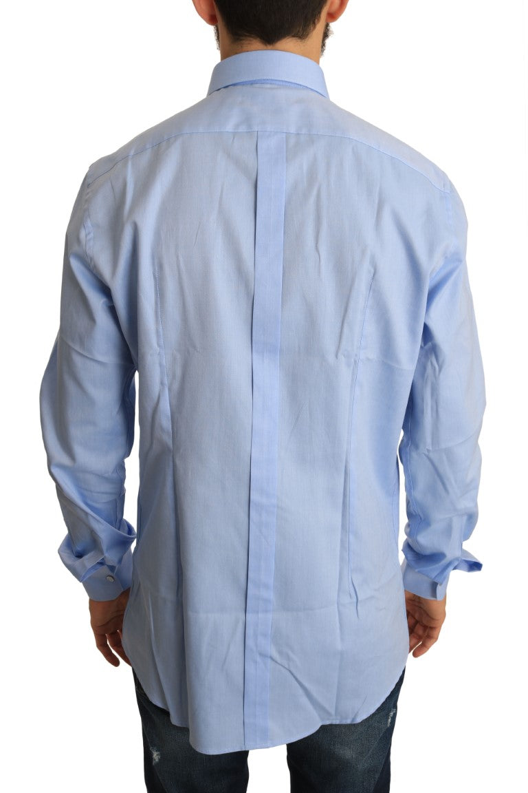 Experience the epitome of Italian craftsmanship with this luxurious Dolce & Gabbana dress shirt. Designed in a slim fit GOLD model, it’s perfect for formal occasions where making a sophisticated impression is key. Crafted from the finest 100% cotton, it boasts a rich blue hue that’s both classic and contemporary. The full front button closure and logo details subtly showcase the brand’s attention to detail and quality. Made in Italy, this shirt is an authentic piece that brings timeless style to any discerning gentleman’s wardrobe.