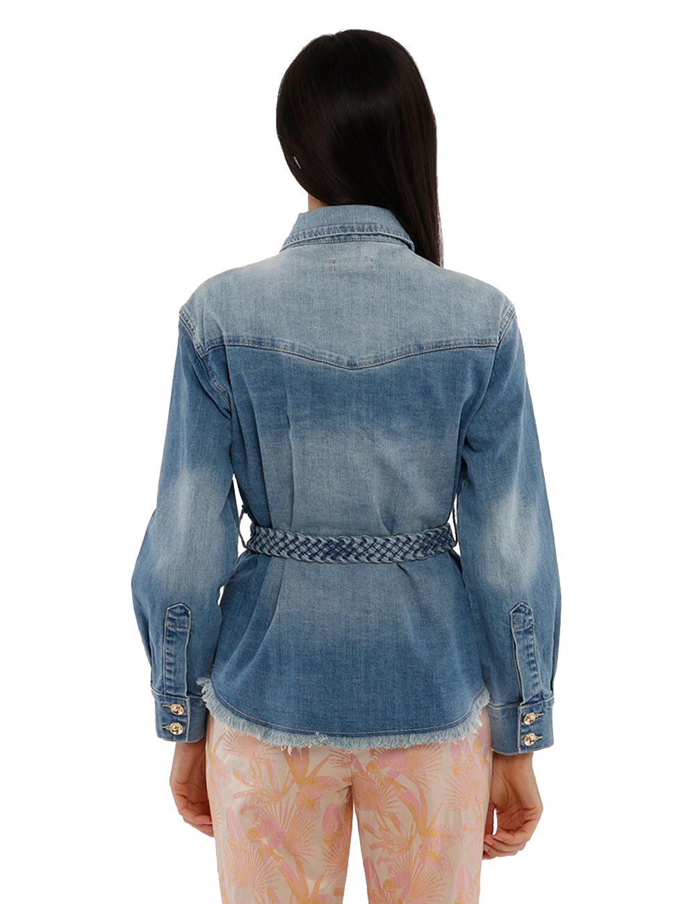 Elevate your wardrobe with this chic women’s denim jacket, perfect for adding a touch of elegance to any casual outfit. Featuring convenient button closure and breast pockets for functionality, this jacket also comes with a stylish ribbon belt to tie at the waist, accentuating your silhouette. The slightly rounded and fringed bottom edge gives it a playful finish, ensuring you make a statement wherever you go.