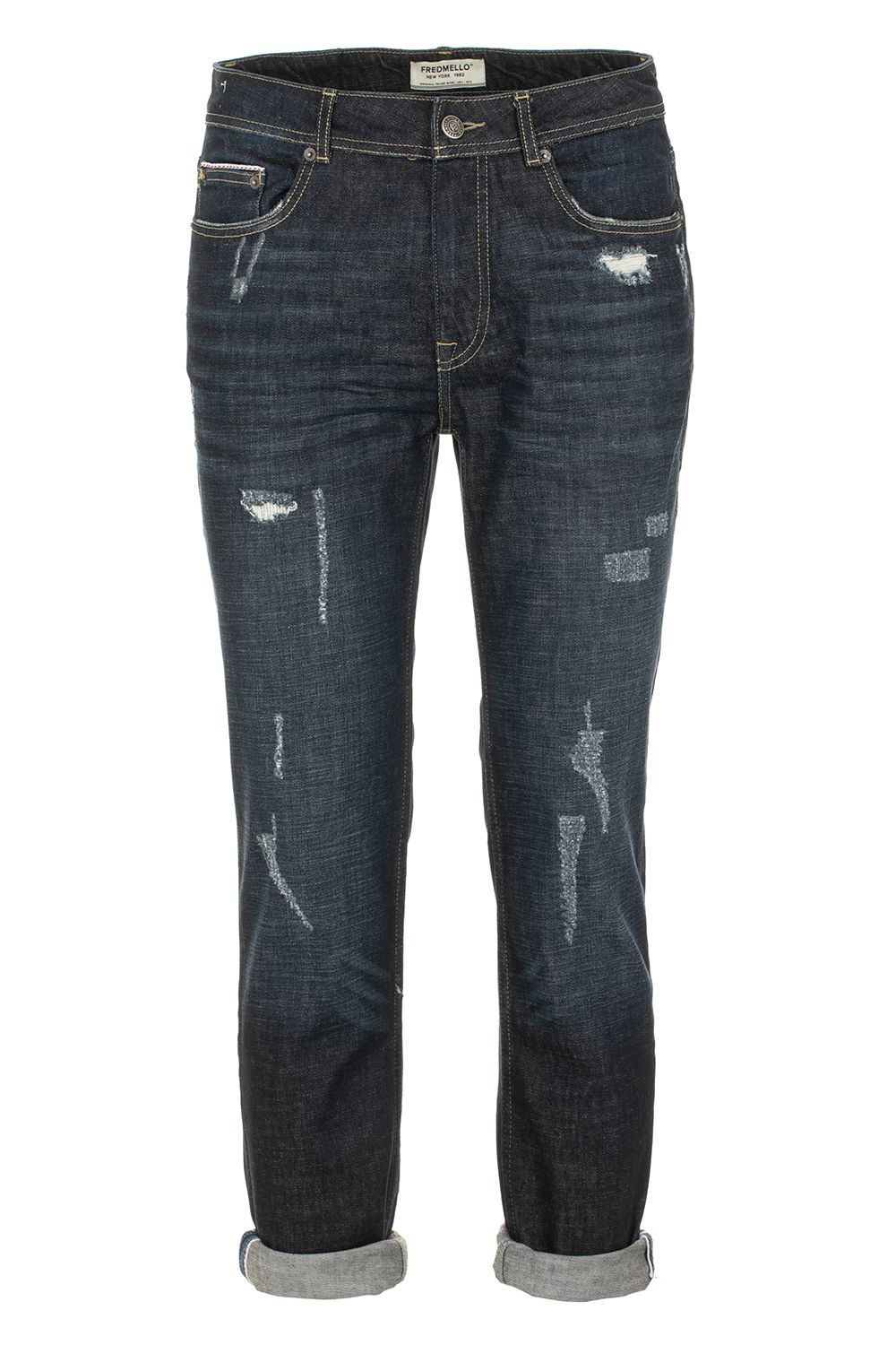Embark on a style journey with these edgy dark blue jeans, designed for the modern man who covets a touch of rebellion in his wardrobe. Featuring a distressed look with deliberate tears and signs of wear, they offer the perfect blend of comfort and rugged style. These jeans are a classic five-pocket design, completed with a convenient zip closure and button for secure fastening. Crafted from a durable blend of cotton and elastane, they provide a slight stretch for the utmost comfort.