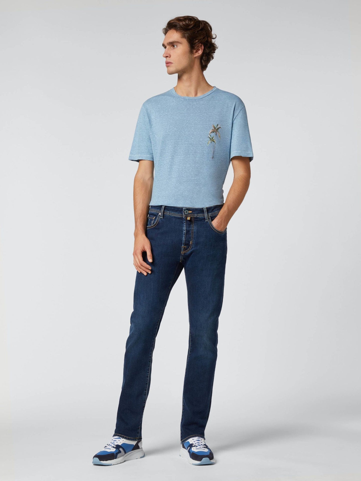 Dive into the world of high-end fashion with these exquisite Italian-made denim jeans. Designed for those who appreciate the blend of timeless style and superior quality, this pair offers the quintessential blue hue matched with a casual yet refined five-pocket design. A distinguished leather patch on the back adds a touch of luxury, while the prudent button closure ensures a seamless look. Embrace comfort without compromising on style with its regular fit cut.
