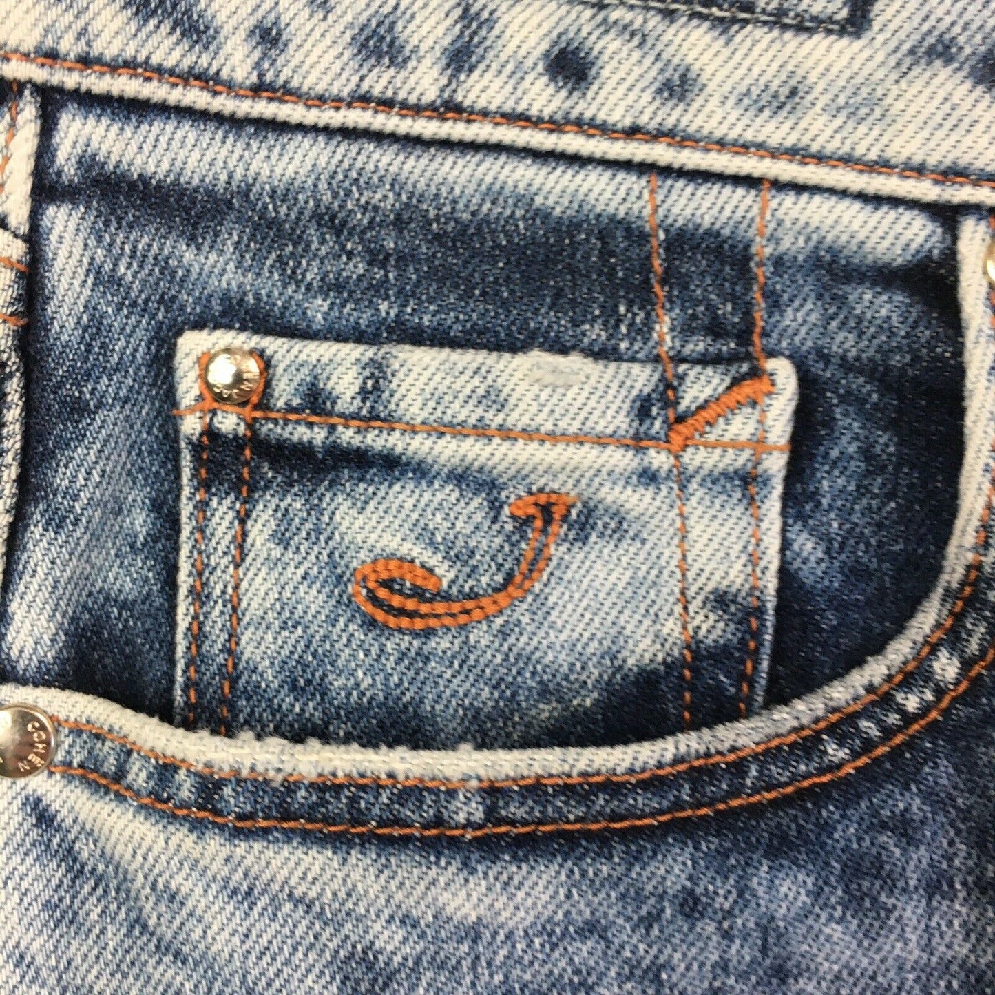 Discover the perfect fusion of classic styling and modern flair with our Acid Wash Cotton Blend Jeans. Crafted from a high-quality cotton blend that contours to your shape, these jeans offer both comfort and chic style. Designed with a versatile straight to slightly flared fit, these jeans feature five pockets, a convenient zip and button closure, and are embellished with an eye-catching orange ponyhair patch at the back. Made with impeccable Italian craftsmanship, these jeans are a staple for any discerning wardrobe.