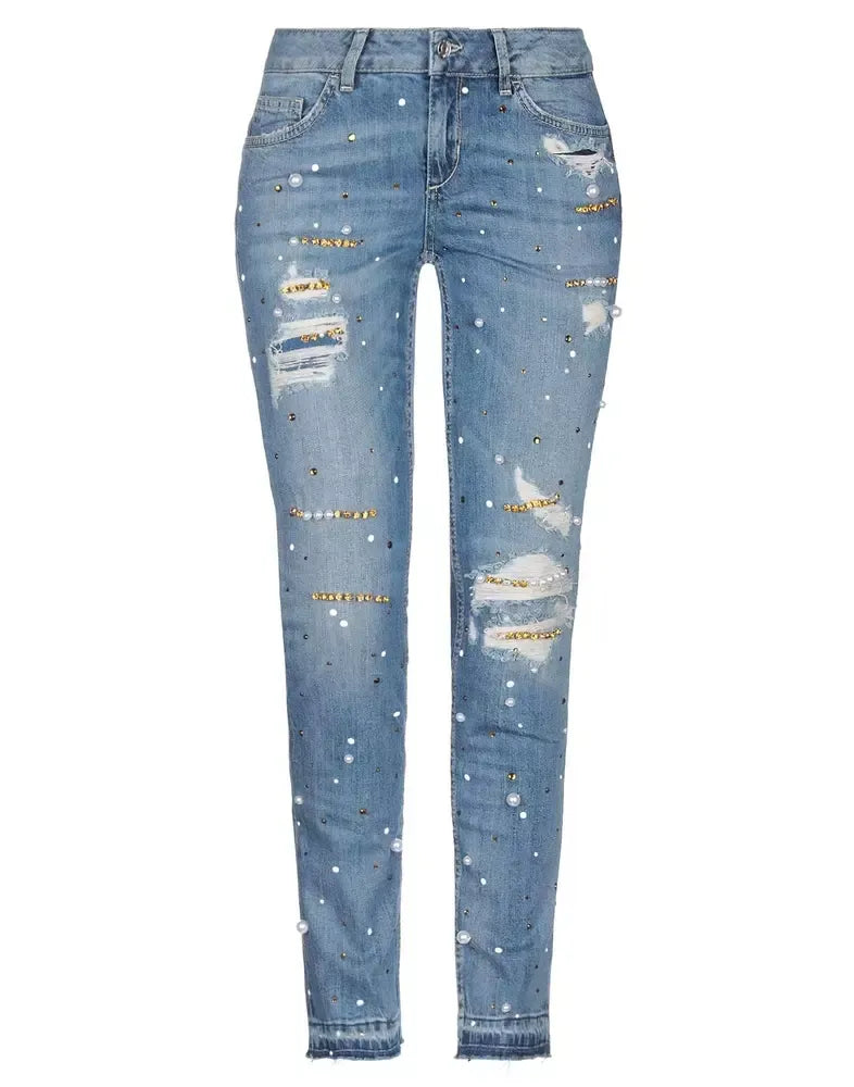 Experience the perfect blend of comfort and style with our exquisite intermediate wash denim jeans, adorned with a dazzling beaded front that adds a touch of glamour to your casual attire. Crafted with a versatile worn effect and featuring convenient five pockets, these jeans are essential for fashion-forward individuals seeking both elegance and utility.