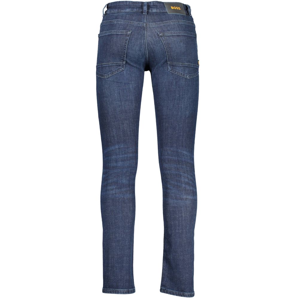 Embrace a perfect blend of comfort and style with these slim-fit jeans, crafted for the modern man. The design features a classic five-pocket configuration, secure button and zip closure, and eye-catching contrasting details. A subtle logo emblem represents the quality and prestige of the Hugo Boss brand.