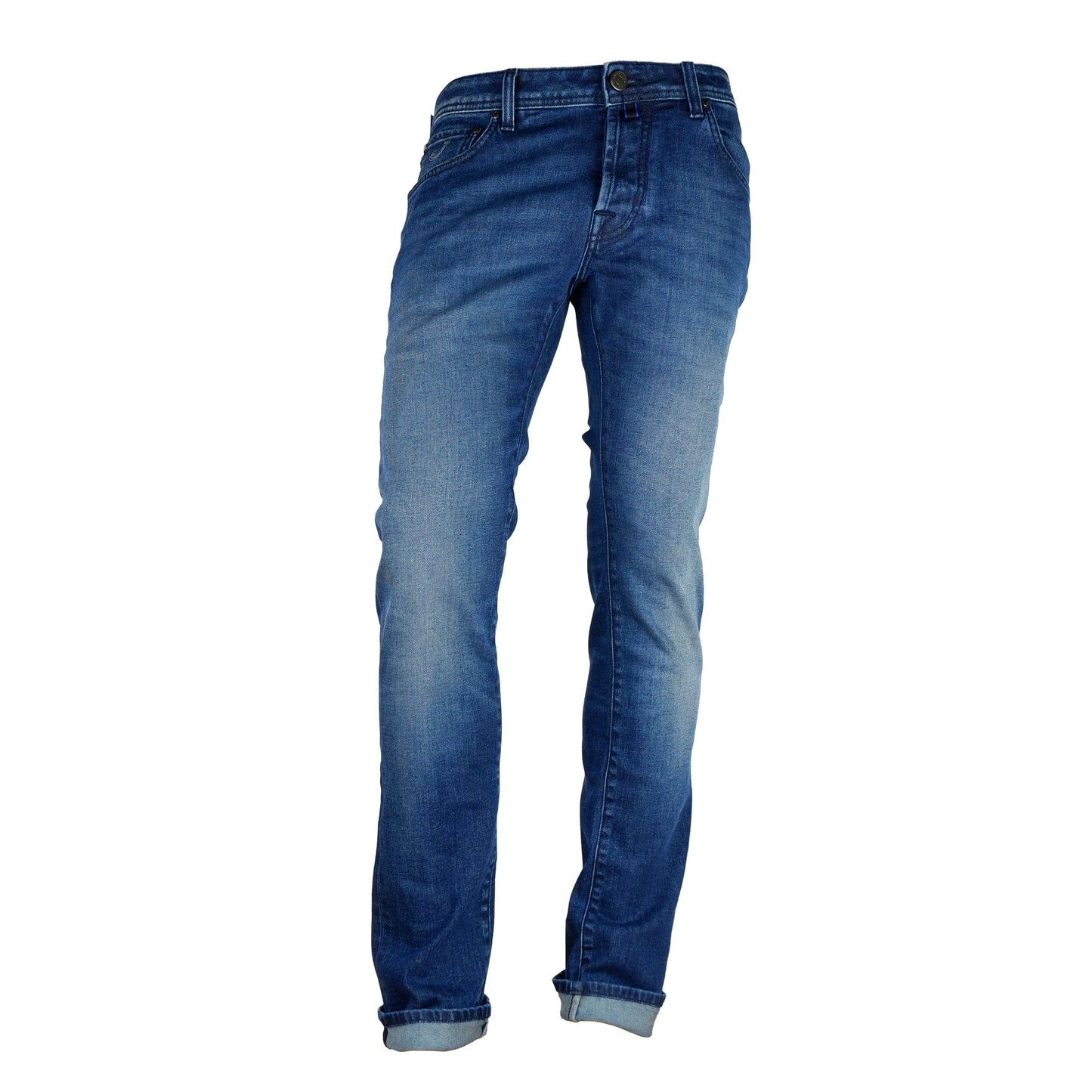 Step into luxury with this impeccable pair of blue jeans designed for the discerning gentleman. Featuring a classic five-pocket design, these jeans come with a sophisticated leather patch on the back that adds a touch of elegance. The button closure provides a secure fit, while the regular fit silhouette ensures comfort without compromising on style. Crafted in Italy, these jeans merge quality with timeless design.