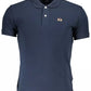 Elegant Slim-Fit Blue Polo with Contrasting Details