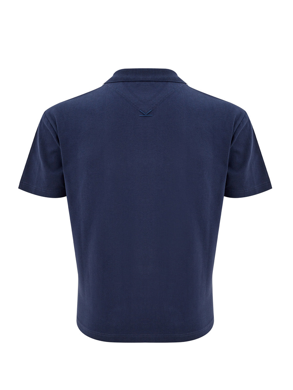 Sleek Blue Cotton Polo Shirt with Contrasting Logo