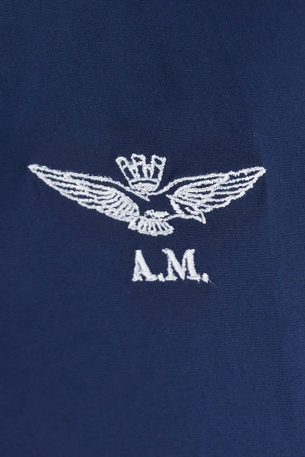 Refine your wardrobe with this men’s slim-fit cotton shirt, featuring a sophisticated button closure design. Adorned with a distinctive eagle logo and A.M. inscription on the left chest, it embodies elegance and comfort. Perfect for a polished casual look or professional attire.