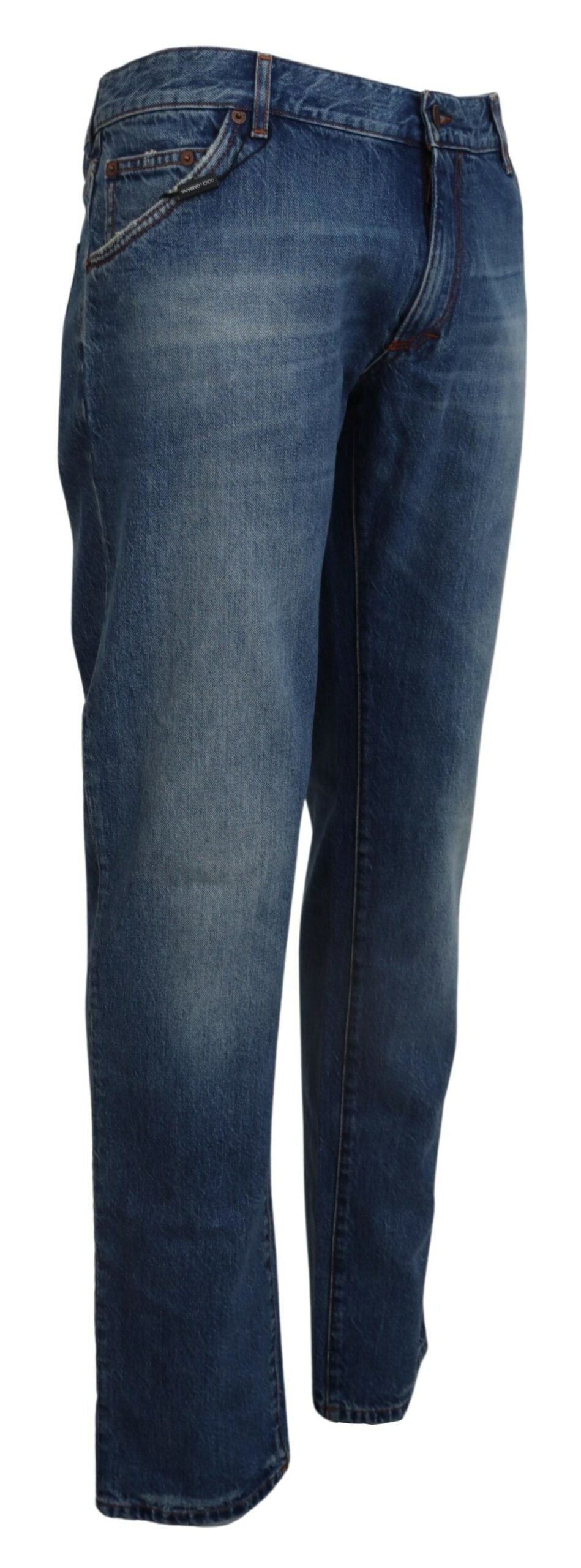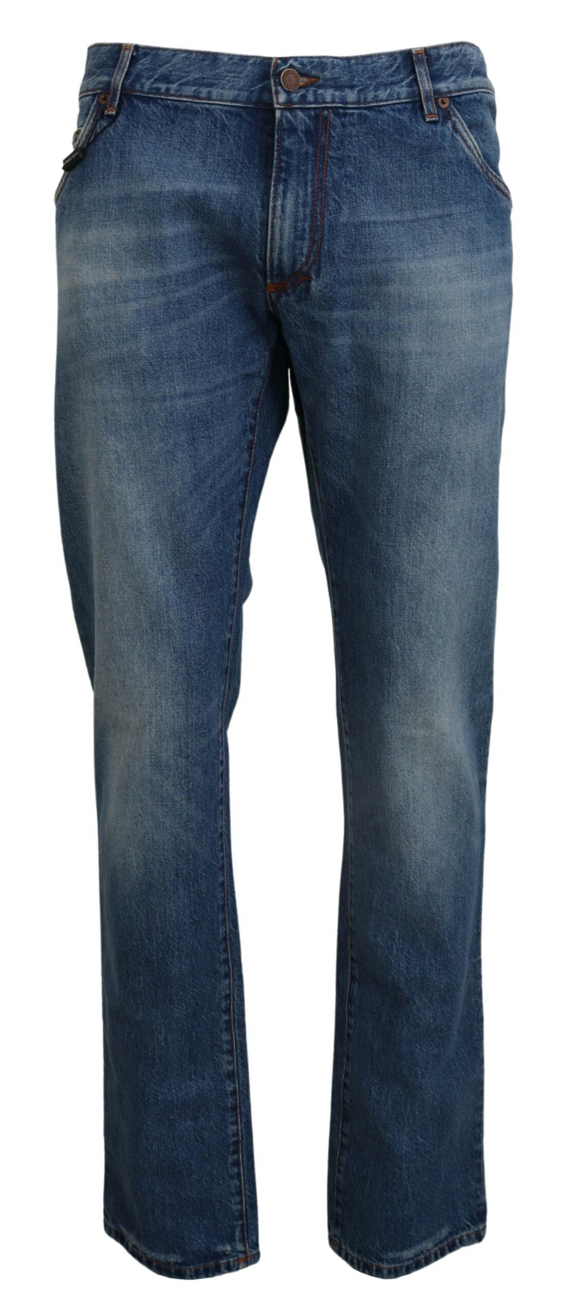 Step out in style with these absolutely gorgeous, brand new straight fit jeans. Crafted by the iconic fashion house, Dolce & Gabbana, these pants are a staple for any wardrobe. Made of premium 100% cotton, they ensure comfort without compromising on style, featuring a contemporary blue hue that’ll pair seamlessly with your favorite pieces. Complete with a classic zip and button closure, and subtle logo detailing, these jeans embody Italian craftsmanship at its finest.