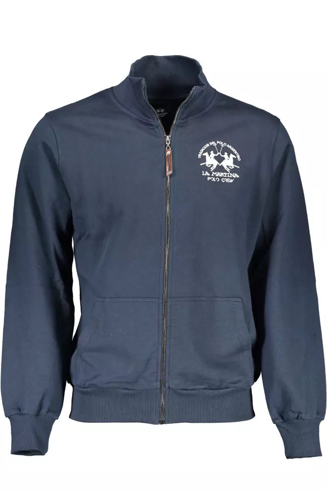 Experience the fusion of luxury and comfort with this exquisite blue sweater from La Martina. This long-sleeved zip-up piece is perfect for those seeking both style and practicality. Featuring intricately detailed embroidery and the iconic La Martina logo, it is a must-have for the distinguished gentleman. Two central pockets provide functionality without sacrificing the sleek design. Crafted from 100% cotton, it promises utmost comfort and longevity.