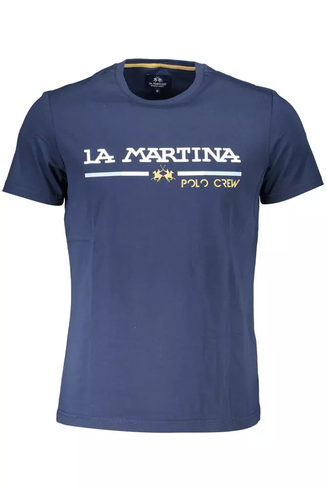 Experience the seamless blend of comfort and style with La Martina’s elegantly crafted blue t-shirt. Perfect for any casual or smart-casual occasion, this piece features short sleeves, a comfortable regular fit, and a classic round neck. The t-shirt is adorned with a tasteful print and the recognizable La Martina logo, adding a touch of class to your everyday attire.