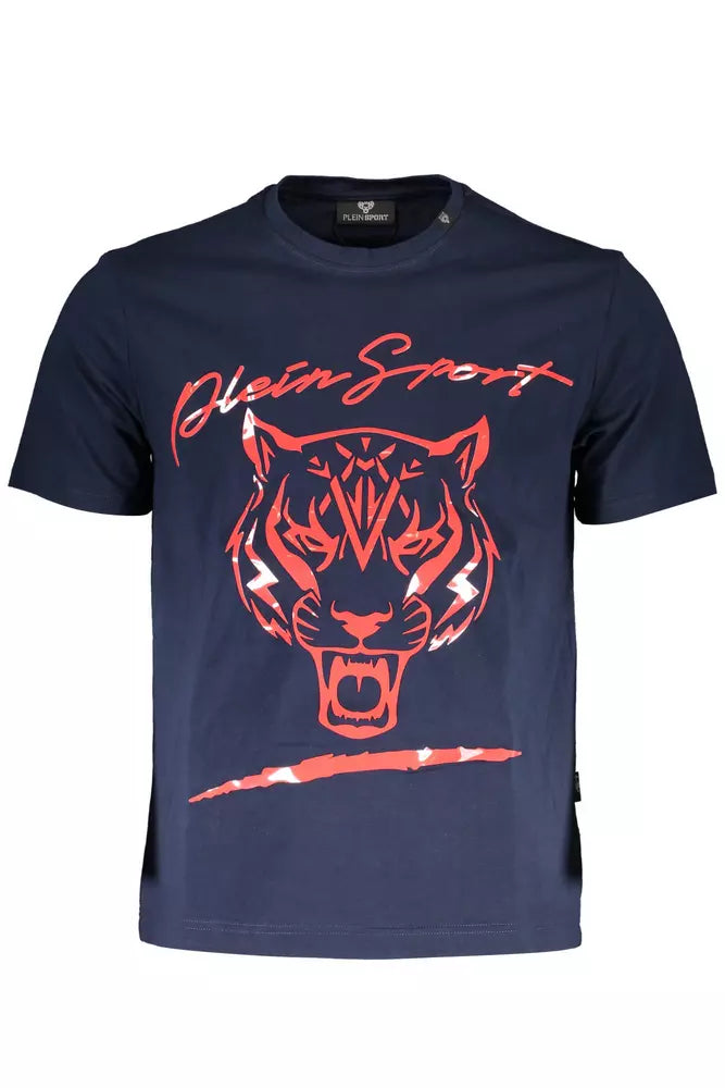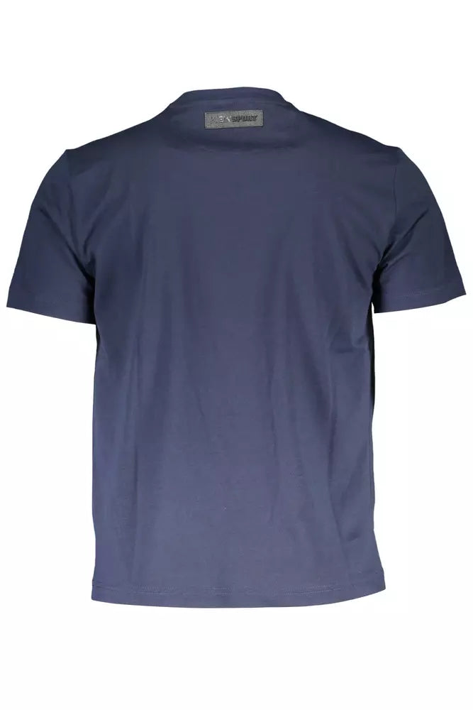 Blue Cotton Crew Neck Tee with Print