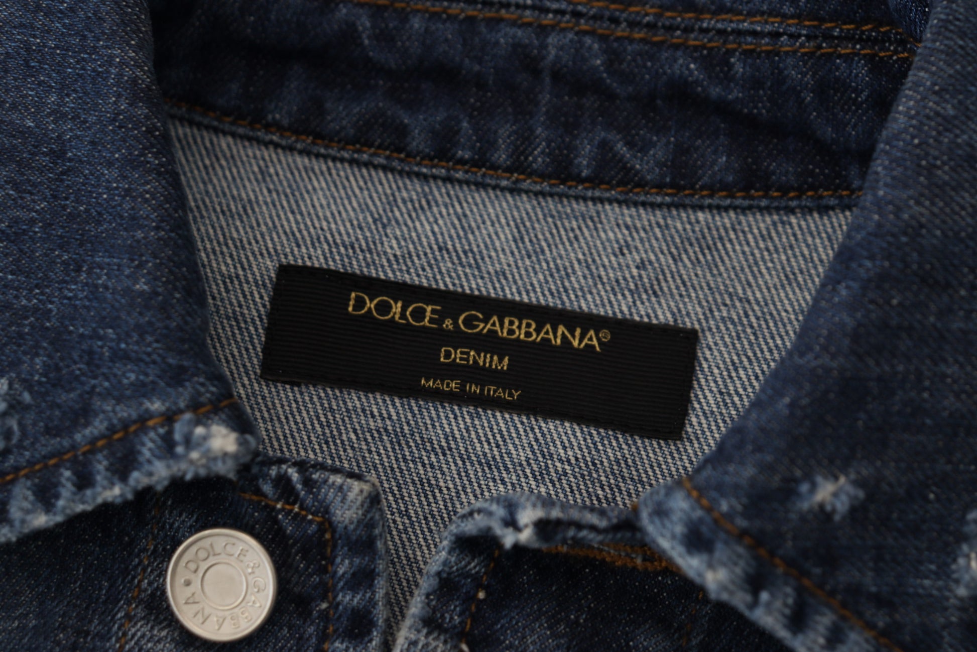 Indulge in Italian sophistication with this stunning jacket by Dolce & Gabbana. Gorgeous, brand new with tags, this piece is a testament to high craftsmanship. Designed as a short blouson model, it’s perfect for creating an effortlessly chic look. Its blue wash color and discreet logo details lend a touch of exclusivity to any ensemble. Crafted from 100% cotton, this jacket promises both style and comfort. Made in Italy, it’s a wardrobe essential for any fashion connoisseur.