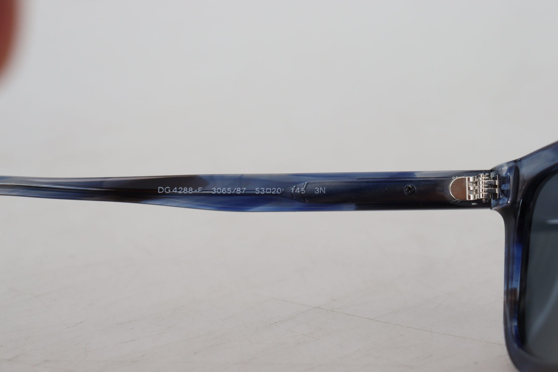 Indulge in the epitome of style with these exquisite sunglasses by Dolce & Gabbana. Crafted from premium acetate with a sleek blue finish, these sunglasses are the perfect accessory to add a touch of elegance to any outfit. They come equipped with black lenses that guarantee 100% UVA and UVB protection, ensuring your eyes are shielded with sophistication. Made in Italy, these shades speak volumes of luxury and fashion-forward design.