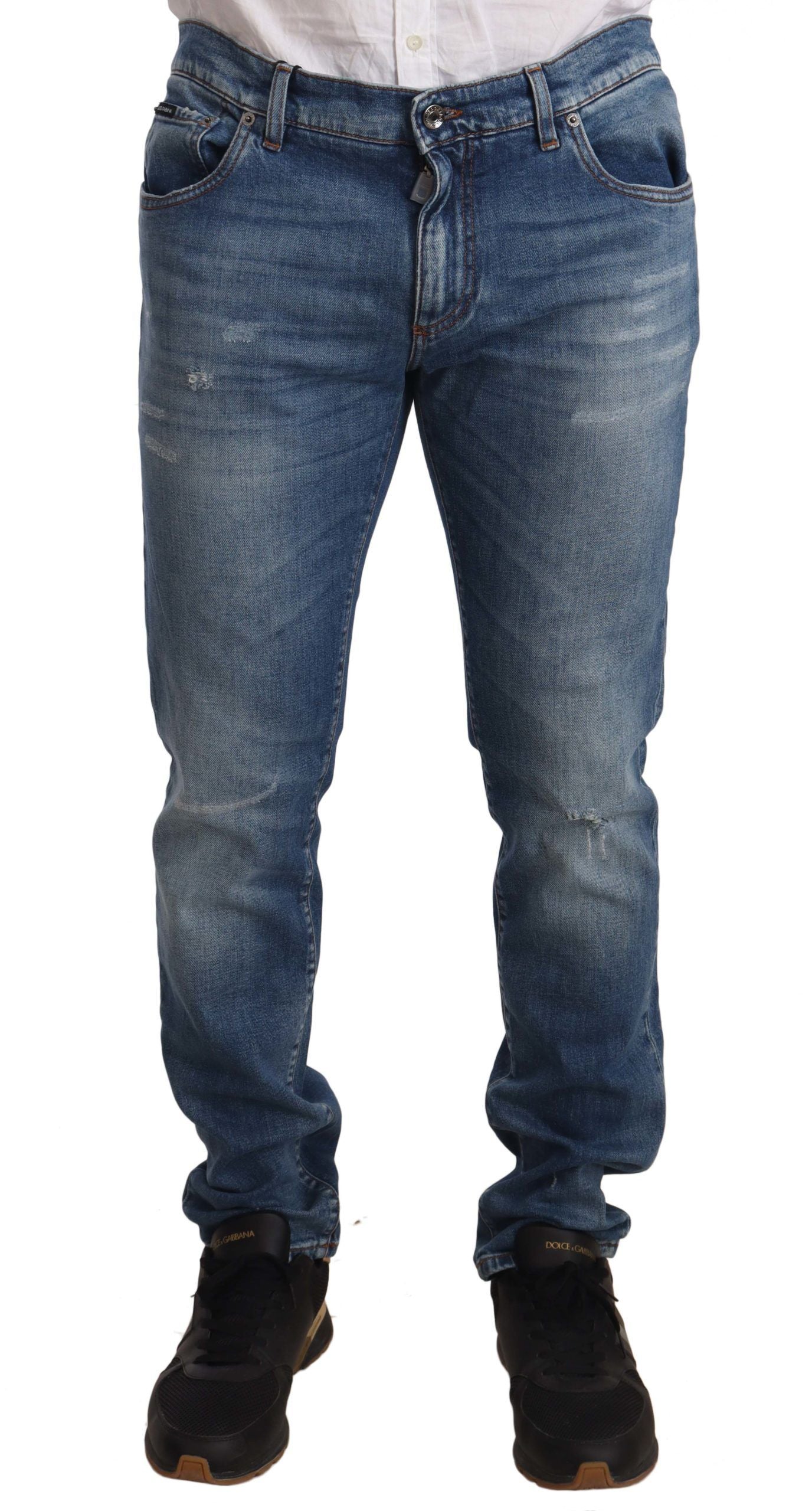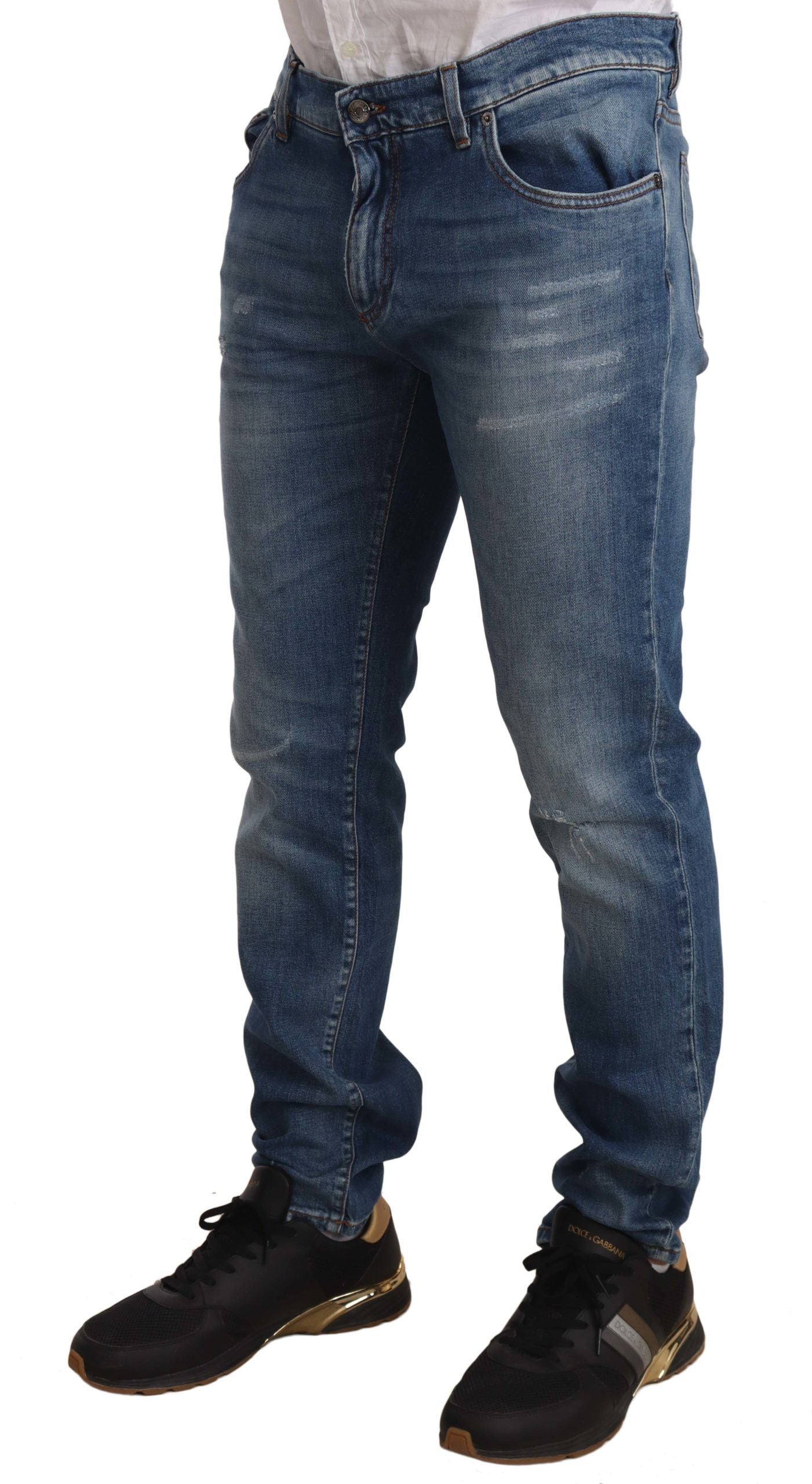 Elevate your denim wardrobe with these impeccable Dolce & Gabbana slim-fit jeans, showcasing a polished distressed style for the fashion-conscious gentleman. Made in Italy, these jeans affirm premium craftsmanship, fitting comfortably with a touch of elastane for that essential stretch. Fasten effortlessly with a zip and button, and carry your essentials in the classic two front and back pocket design. These jeans don’t just offer superior comfort and fit but also flaunt a raised logo for an unmistakable designer statement.